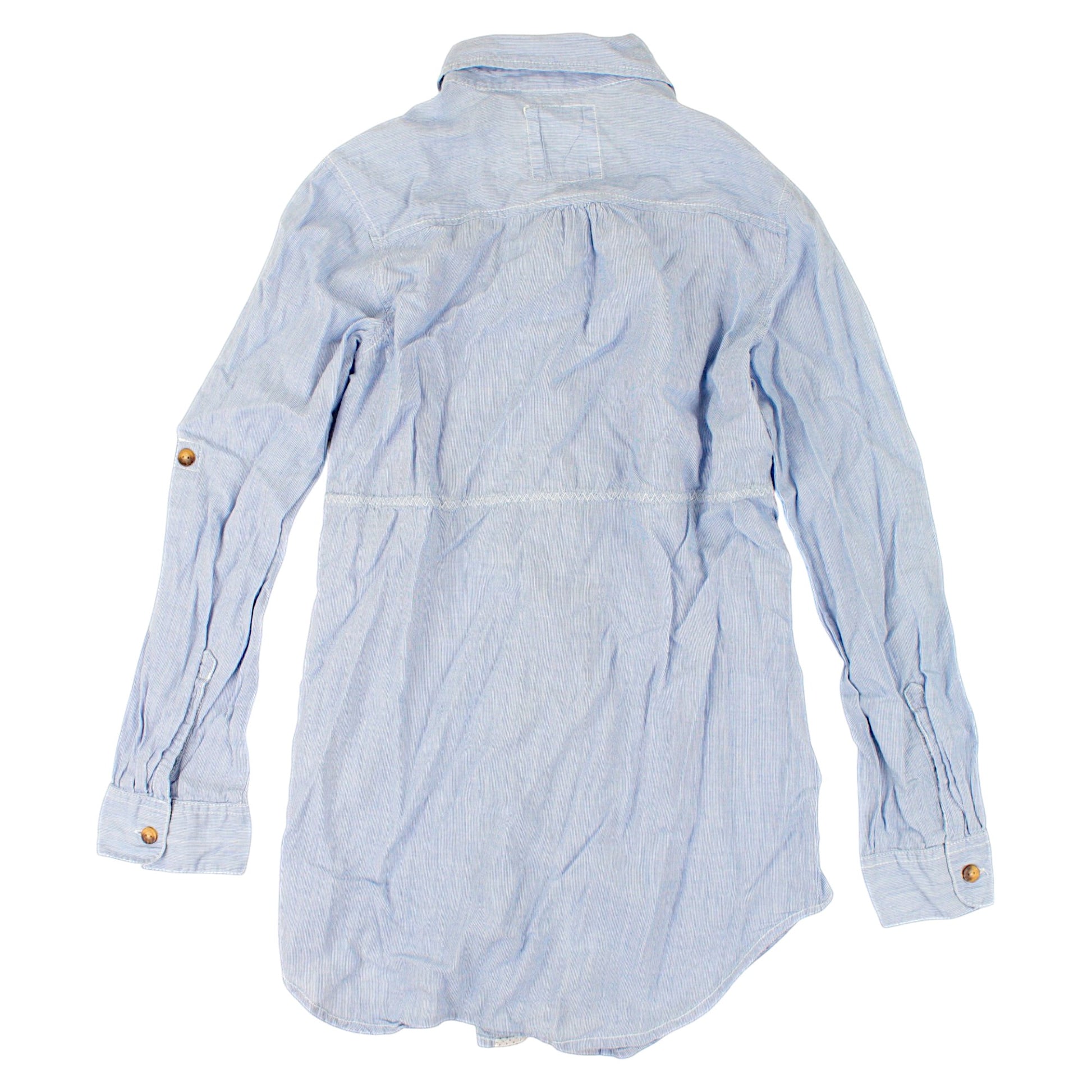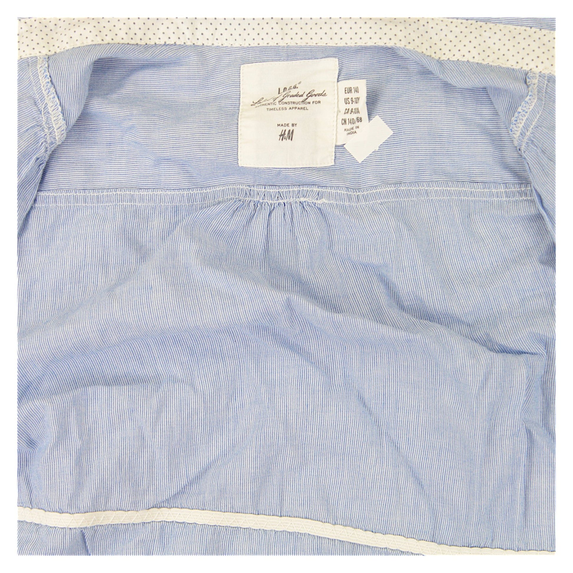 Diese stylische H&M Mädchen-Shirt-Tunika hat eine Brusttasche . Sie wird mit Holzknöpfen geschlossen und verleiht dem Kleid Charme und eine einzigartige Note. Die langen Ärmel zum Zuknöpfen machen sie perfekt für Frühling und Sommer . Die zarte blaue Farbe mit dezenten Streifen verleiht dem Look eine leichte und frische Note. Sie passt perfekt zu Leggings oder Jeans.