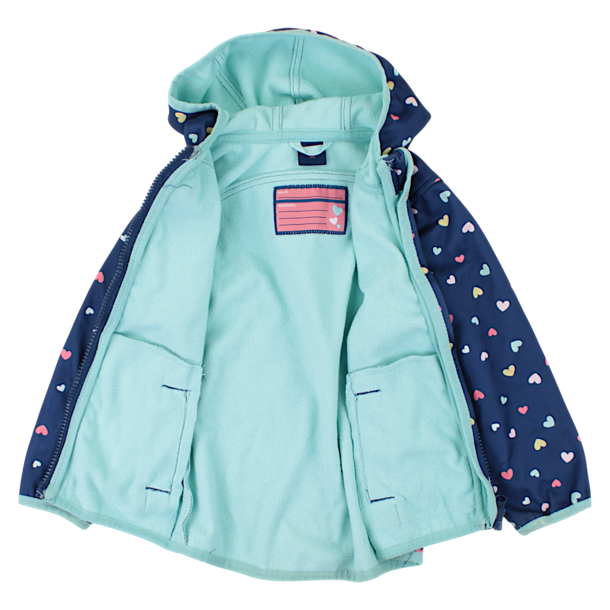 Perfekt für kühlere Tage: Diese Mädchenjacke mit bunten Herzen sorgt für einen fröhlichen Look. Das leichte Material bietet Tragekomfort und Wärme. Der Reißverschluss erleichtert das An- und Ausziehen. Die Jacke verfügt über praktische Taschen zur Aufbewahrung kleiner Gegenstände. Die Kapuze schützt zusätzlich vor Wind. Sie eignet sich perfekt für den Alltag, den Kindergarten oder einen Spaziergang. Die marineblaue Farbe macht sie vielseitig und lässt sich leicht mit verschiedenen Outfits kombinieren.