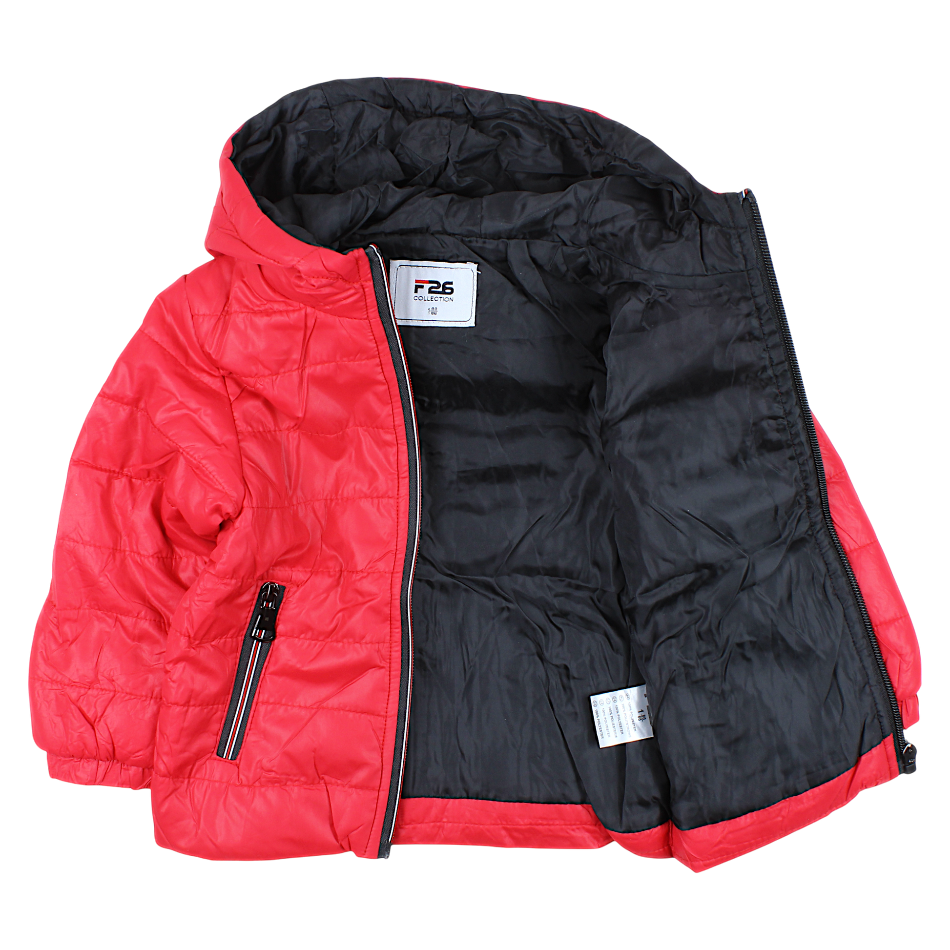 Gesteppte Übergangsjacke für Jungen F26 2035-17-14325 mit durchgehendem Reißverschluss, rot. Diese Jacke ist perfekt für Frühlings- und Sommertage und schützt Ihr Kind dank ihres hochwertigen Materials und der verstellbaren Kapuze vor Kälte und Wind. Sie verfügt über praktische Reißverschlusstaschen für die kleinen Habseligkeiten Ihres Kindes und Reflektorstreifen für mehr Sicherheit im Dunkeln. Die der Jahreszeit angepasste Ärmellänge sorgt für Komfort, ohne die Bewegungsfreiheit einzuschränken.