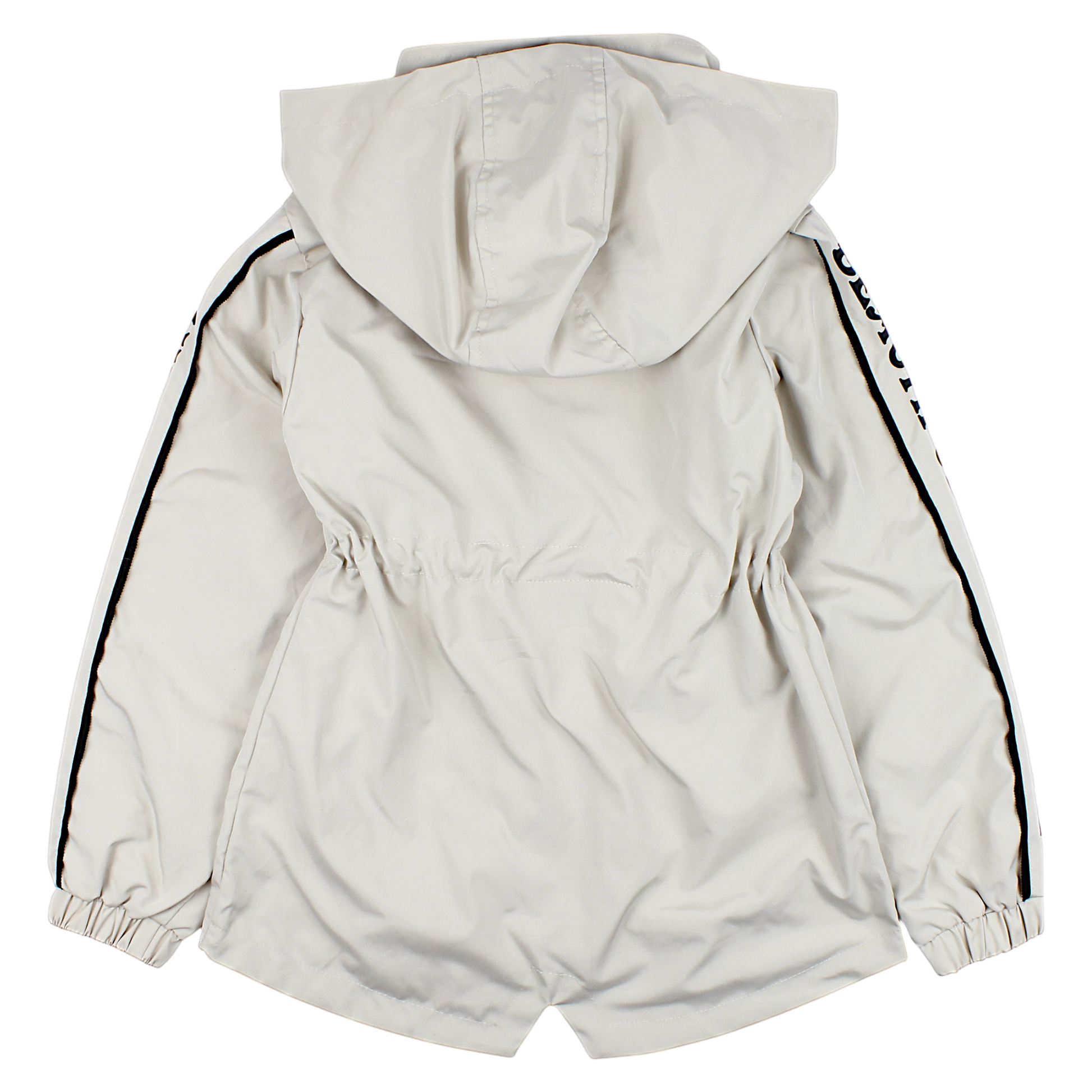Eine stylische Frühlingsjacke für Mädchen in elegantem Beige , perfekt für die Übergangszeit. Sie verfügt über eine praktische Kapuze , die vor Wind und leichtem Regen schützt. Ein durchgehender Reißverschluss erleichtert das Anziehen, und der Kordelzug in der Taille ermöglicht eine individuelle Passform. An den Seiten befinden sich zwei Eingrifftaschen für Kleinigkeiten, und dekorative Schriftzüge auf den Ärmeln verleihen der Jacke einen modischen Touch. Elastische Bündchen sorgen für Komfort.
