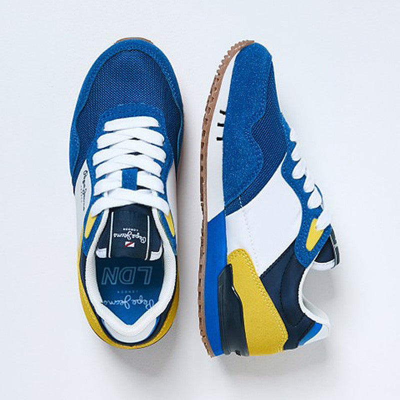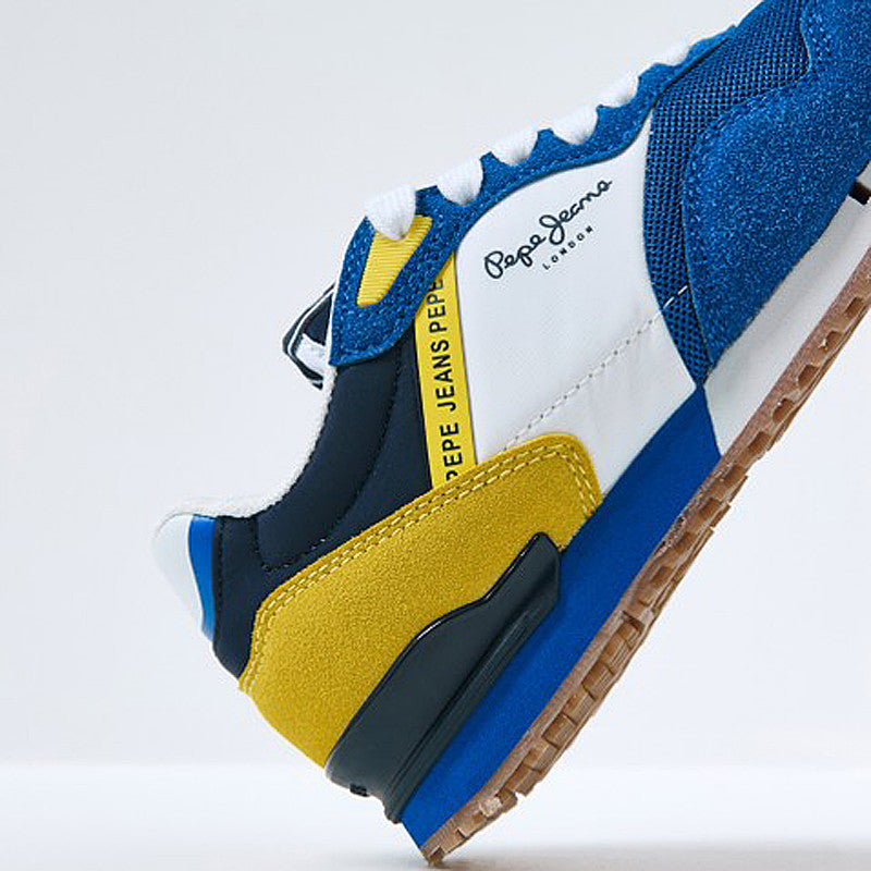Ein besonderes Merkmal dieses Modells sind die leuchtenden Farben: Blau, Gelb und Weiß , die den Schuhen einen einzigartigen Charakter verleihen. Diese Farbkombination macht sie zu einer perfekten Ergänzung für jedes Outfit – sowohl sportlich als auch lässig. Das Pepe Jeans-Logo und die modischen Details verleihen den Schuhen einen Hauch von Originalität und geben jedem Jungen das Gefühl, etwas Besonderes zu sein.