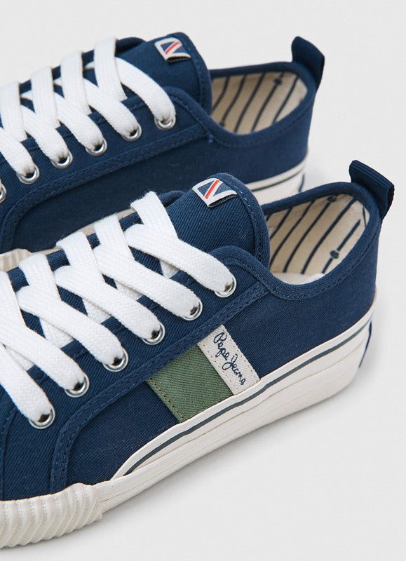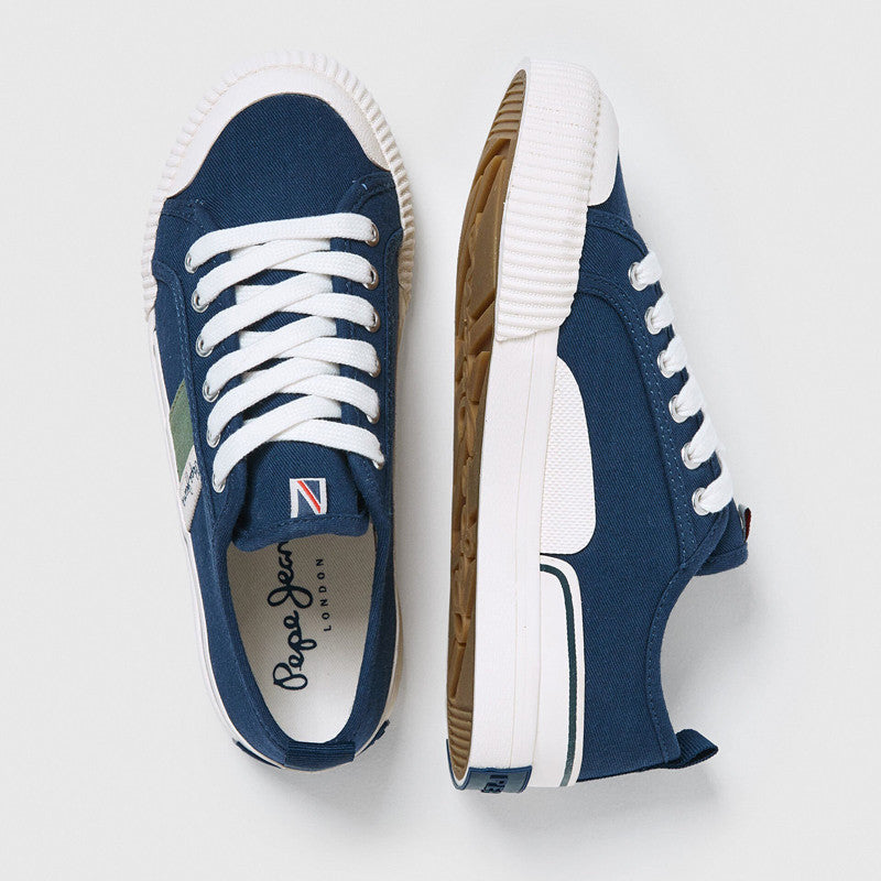 - Modernes Design: Marineblau kombiniert mit dezenten, kontrastierenden grünen Akzenten verleihen diesen Schuhen einen stylischen Look, der zu vielen Outfits passt. Zusätzliche Details, wie das Pepe Jeans-Logo, unterstreichen ihre Originalität.