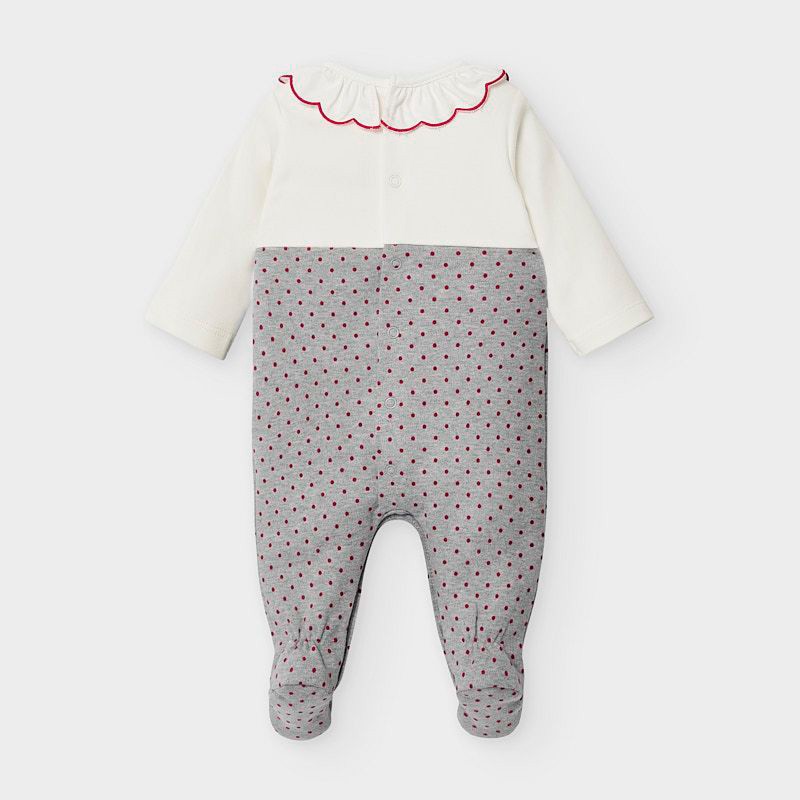 Kinder-Pyjama mit Punkten, Kragen und Stickerei für Mädchen von Mayoral aus der Neugeborenen-Kollektion für Mädchen, Herbst/Winter, Produktcode 2755, Farbe 65 Grau. Kleidung für Neugeborene.