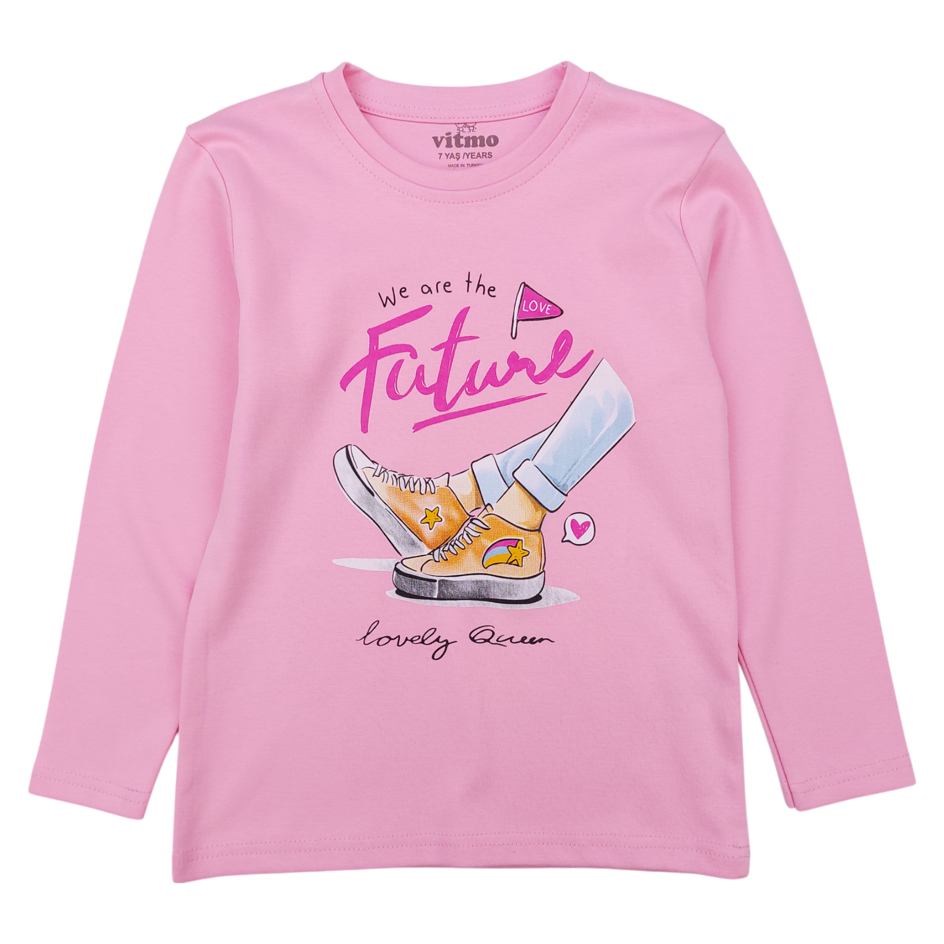 Rosa Mädchen-Schlafanzug Vitmo ist die perfekte Wahl für die Herbst-/Wintersaison. Dieses Set vereint modisches Design mit maximalem Komfort. Das Pyjama-Oberteil besteht aus hochwertigem Baumwolle , verfügt über lange Ärmel und einen auffälligen Print mit Sneakers und dem inspirierenden Slogan „We are the Future“. Stilvolle grafische Details unterstreichen den einzigartigen Charakter des Produkts, das perfekt auf den Geschmack junger Modeliebhaber abgestimmt ist.