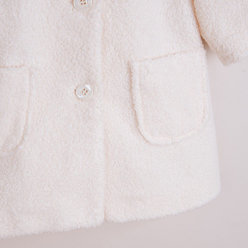 Eleganter MINIMI Baby-Taufmantel für Mädchen aus der Herbst/Winter-Kollektion, Produktcode 63/21, Farbe Creme. Kindermode.