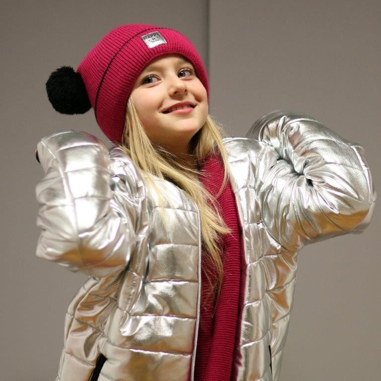 Warme Wintermützen für Kinder Pupillenmütze mit Schal TARA Farbe Amaranth aus der Herbst Winter Saison.