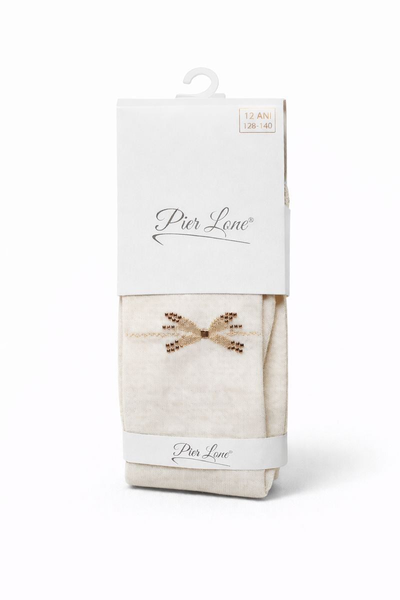 Rajstopy pachnące kokardka z cyrkonią dziewczęce jasny beż Pier Lone PL-1992-161225