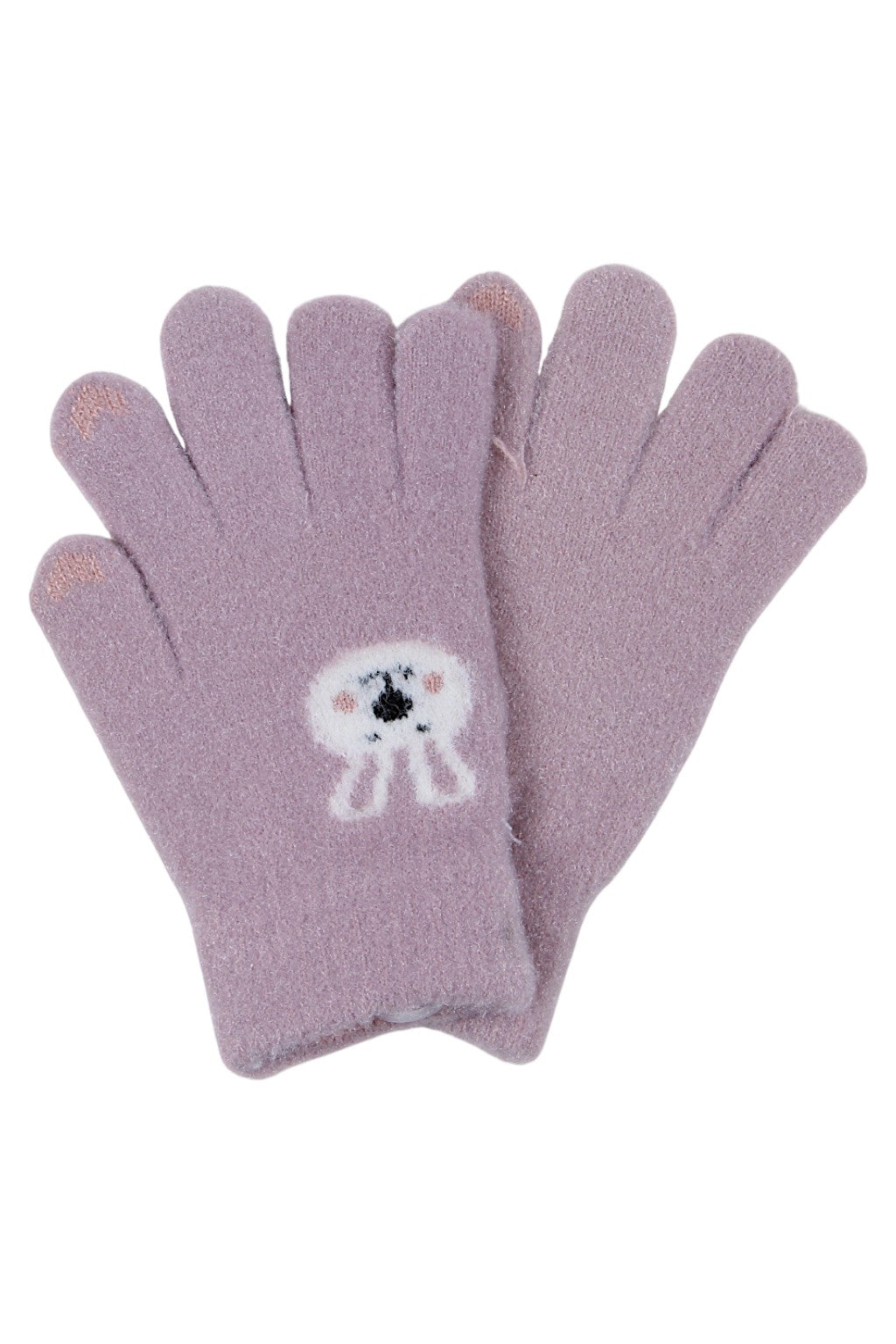 Mädchenhandschuhe mit Hasenmotiv in Heidekrautfarbe