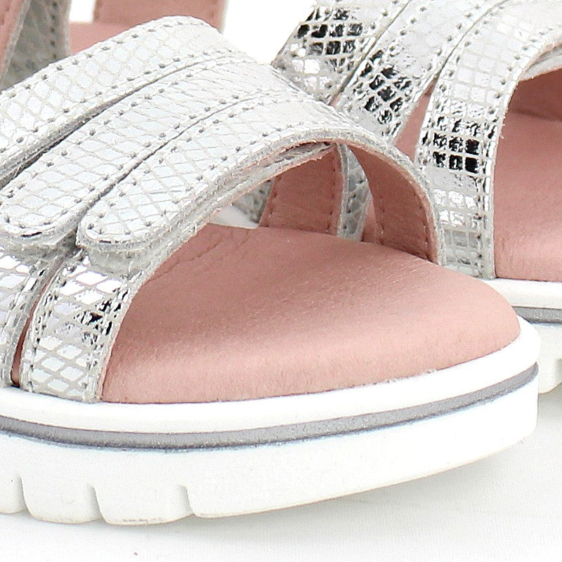Kinderschuhe: Glänzende Sandalen für Mädchen von Garvalin aus der Frühjahr/Sommer-Kollektion, Produktcode 202652, Silber. Kinderschuhe.