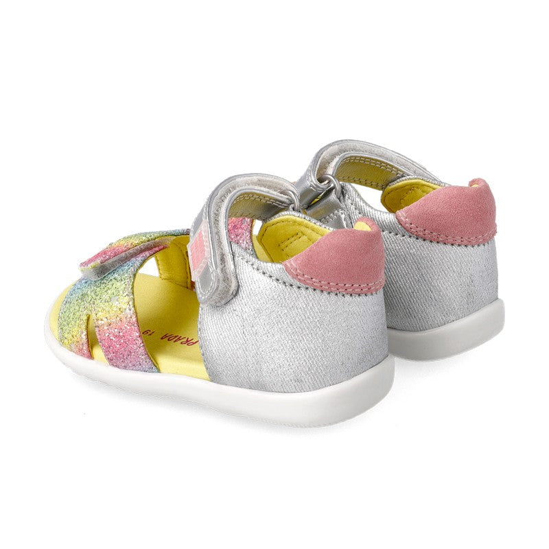 Glitzersandalen von Agata Ruiz De La Prada für Kinder mit Klettverschluss aus der Frühjahr-Sommer-Kollektion, Produktcode 212903, Farbe Silber.