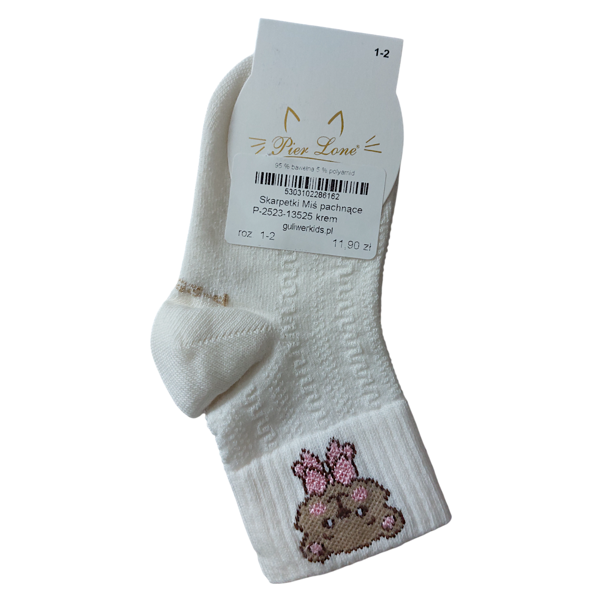 Pier Lone Cremefarbene Teddybär-Socken mit Duft für Mädchen P-2523-13525