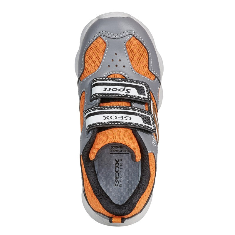 Kinderschuhe, glänzende Sneakers mit Klettverschluss für Jungen, Geox, Frühjahr/Sommer-Kollektion, Produktcode J024BC-014BU-C0036, Farbe: Grau/Orange