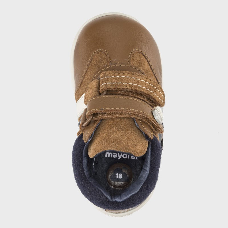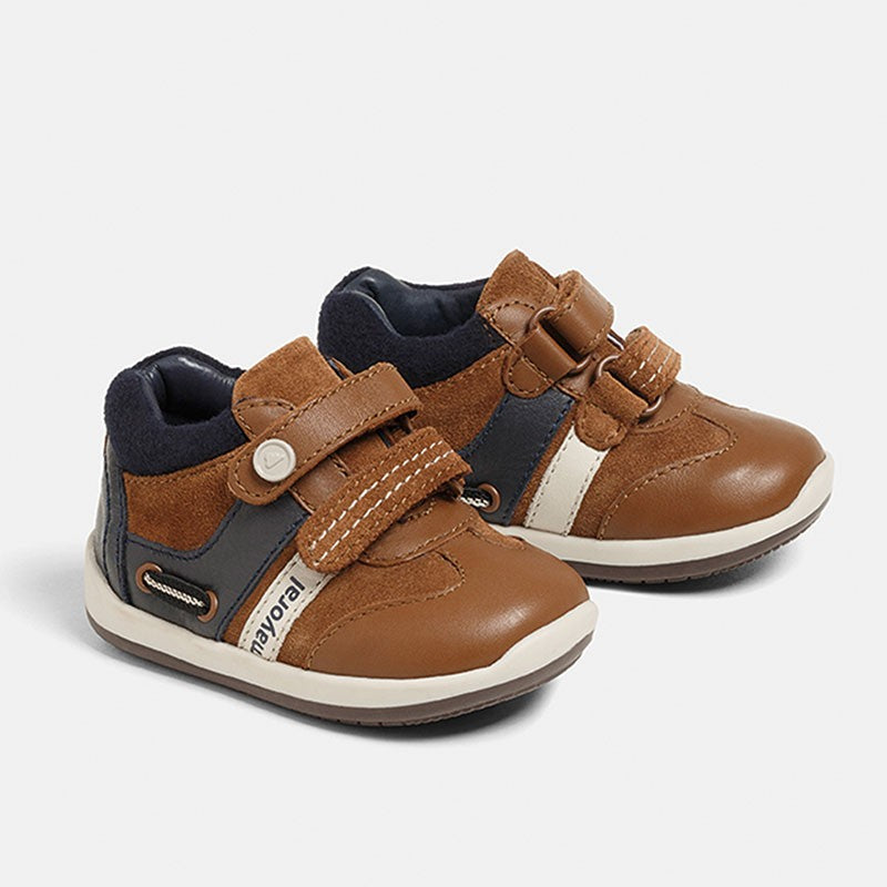 Kinder-Leder-Sneaker mit Klettverschluss für Jungen von Mayoral aus der Herbst-/Winterkollektion für Babyjungen, Produktcode 42156, Farbe 11 Braun. Kinderschuhe.