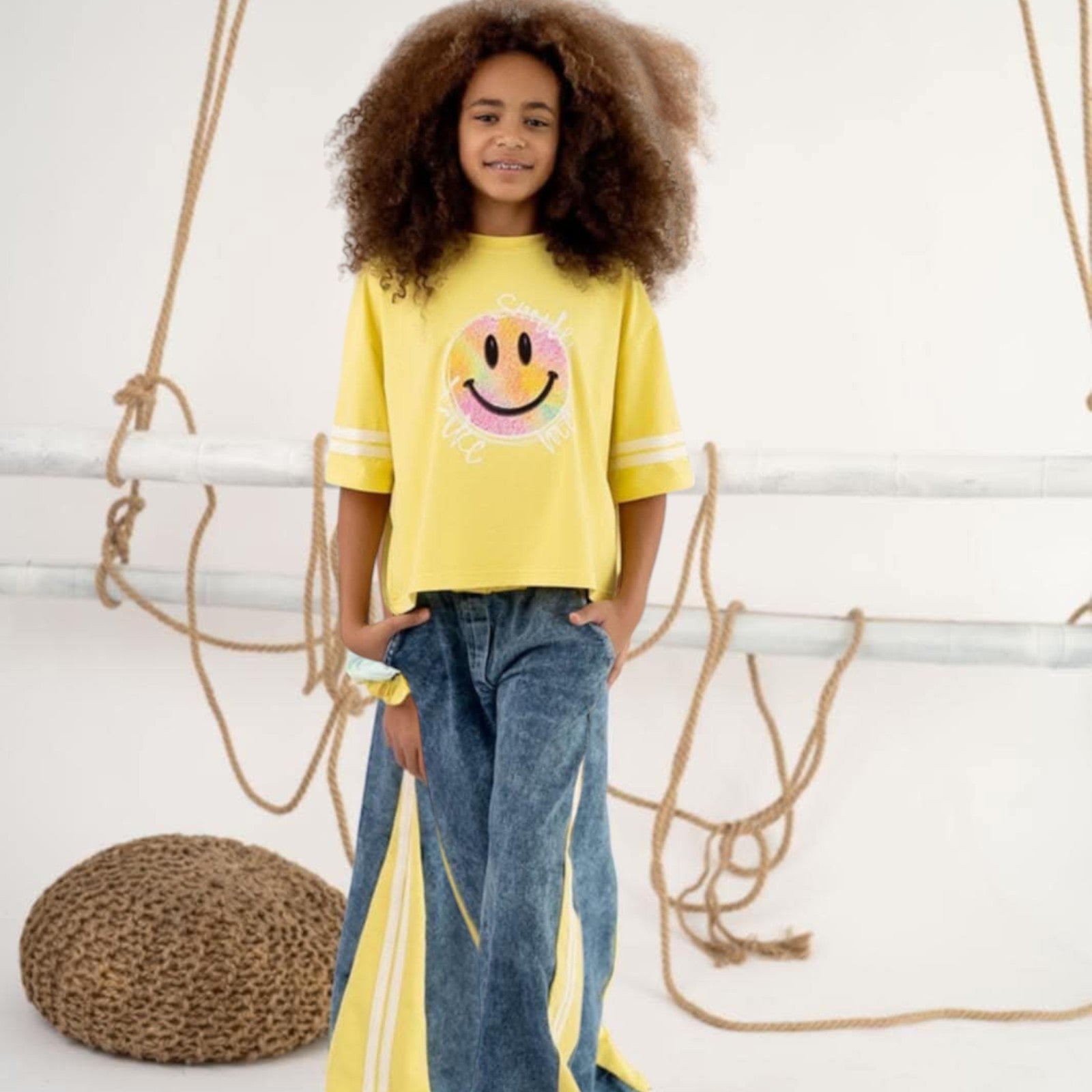 Wir präsentieren das modische Mädchenhose mit Streifen die die perfekte Kombination aus Stil und Komfort für die Saison sind Frühling-Sommer . Hergestellt aus hochwertigem elastische Jeans , sie passen sich perfekt dem Körper an und gewährleisten volle Bewegungsfreiheit. Dekorativ Streifen in Kontrastfarben an den Seiten verleihen ihnen einen modernen und sportlichen Charakter, den Kinder und Eltern gleichermaßen lieben werden.