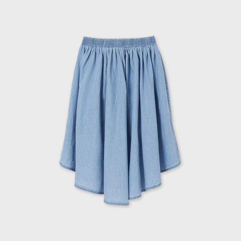 Mayoral Kinderrock mit Schleppe aus der Junior-Girl-Kollektion für die Saison Frühjahr/Sommer, Produktcode 6904, Farbe 50 Jeans. Kinderbekleidung für Jugendliche.