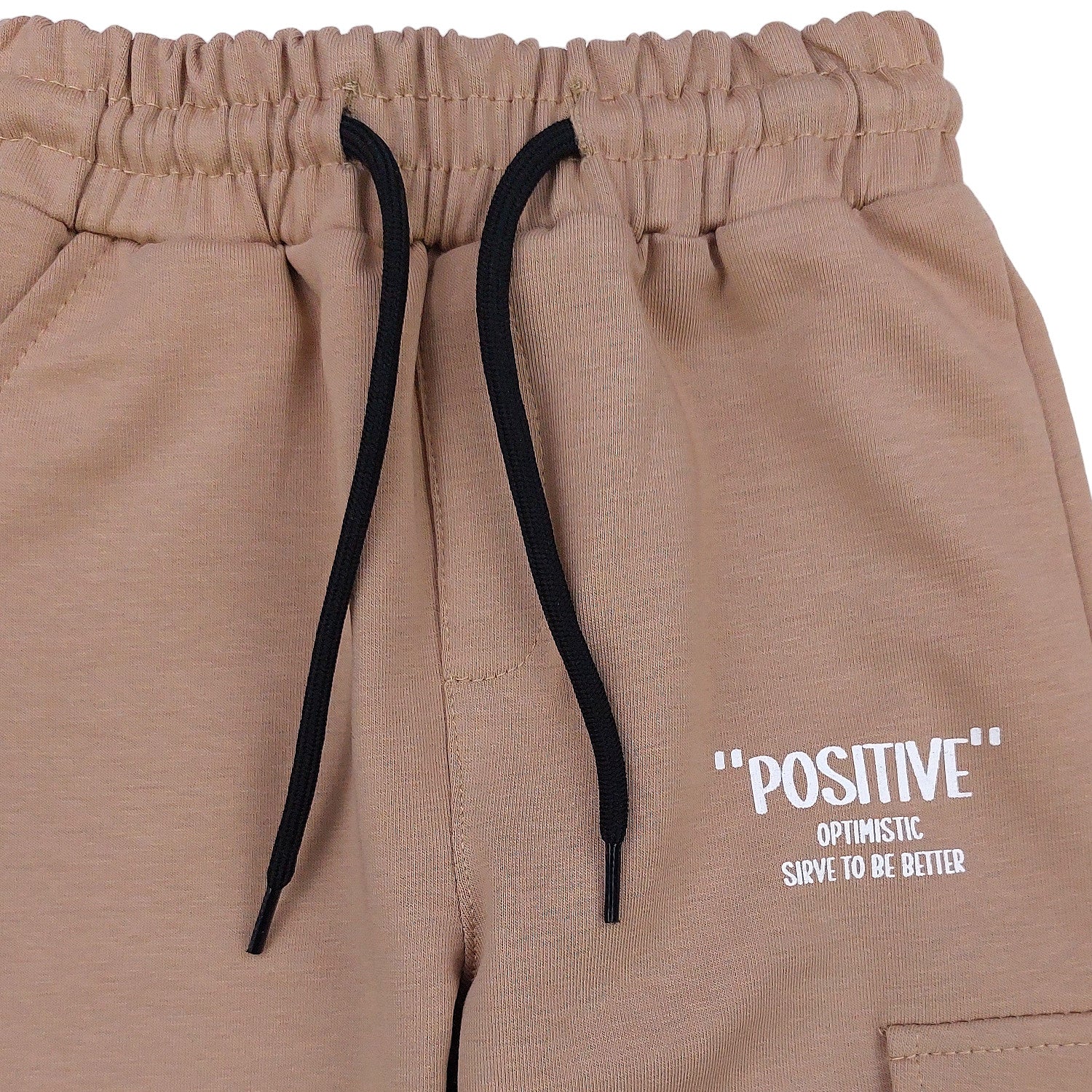 Diese Hose besticht durch ihr durchdachtes Design. Ein elastischer Bund mit schwarzem Kordelzug sorgt für eine optimale Passform und maximalen Tragekomfort. Rippbündchen am Beinabschluss verleihen nicht nur einen sportlichen Touch, sondern gewährleisten auch einen angenehmen Sitz und schützen die Beine vor Zugluft. Eine seitliche Tasche am Bein ist praktisch und stylisch zugleich – ideal zum Verstauen von Kleinigkeiten wie Taschentüchern oder einem kleinen Spielzeug. Minimalistische Prints mit dem Schriftzug „Positive“ verleihen der Hose zudem einen modernen Look, der sowohl Kinder als auch Eltern begeistert.