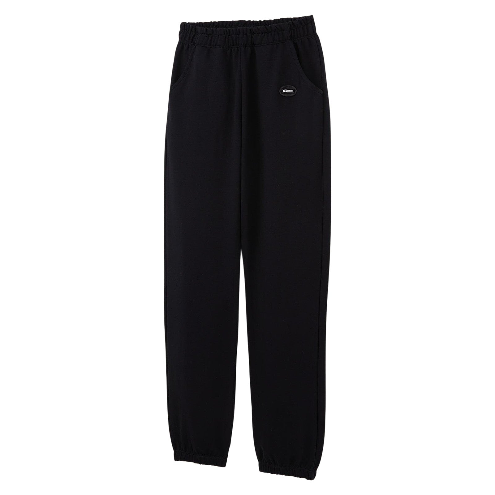 Bequeme schwarze Jogginghose für Jungen aus weichem, dehnbarem Stoff. Sie verfügt über einen elastischen Bund für einen bequemen Sitz und elastische Bündchen für eine bessere Passform. Sie hat außerdem zwei praktische Taschen und ein dezentes Logo am Bein. Perfekt für den Alltag, die Schule und sportliche Aktivitäten.