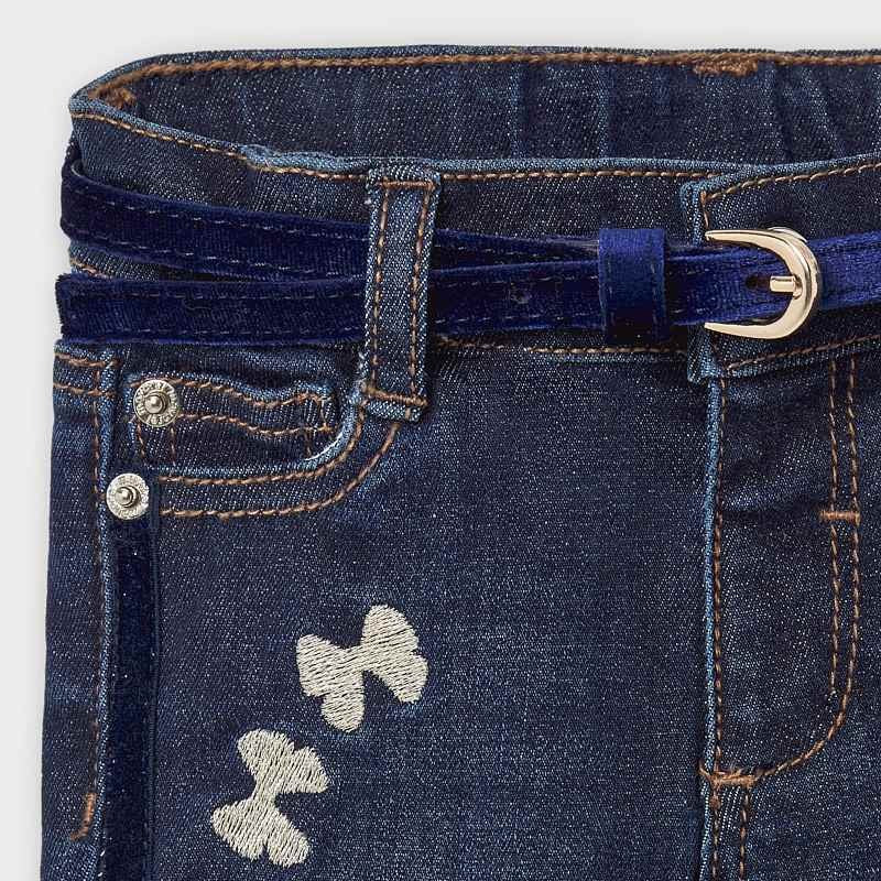 Lange Kinder-Jeanshose mit Gürtel und Stickerei für Mädchen von Mayoral aus der Baby-Mädchen-Kollektion für die Herbst-Winter-Saison, Produktcode 2590, Farbe 79 Navy. Kinderbekleidung.