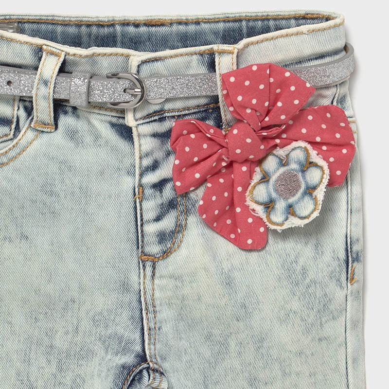 Kinder-Longjeans mit Gürtel und Zierapplikation für Mädchen von Mayoral aus der Frühjahr/Sommer Baby-Mädchen-Kollektion, Produktcode 1577, Farbe 51 Hellblau. Kinderbekleidung.