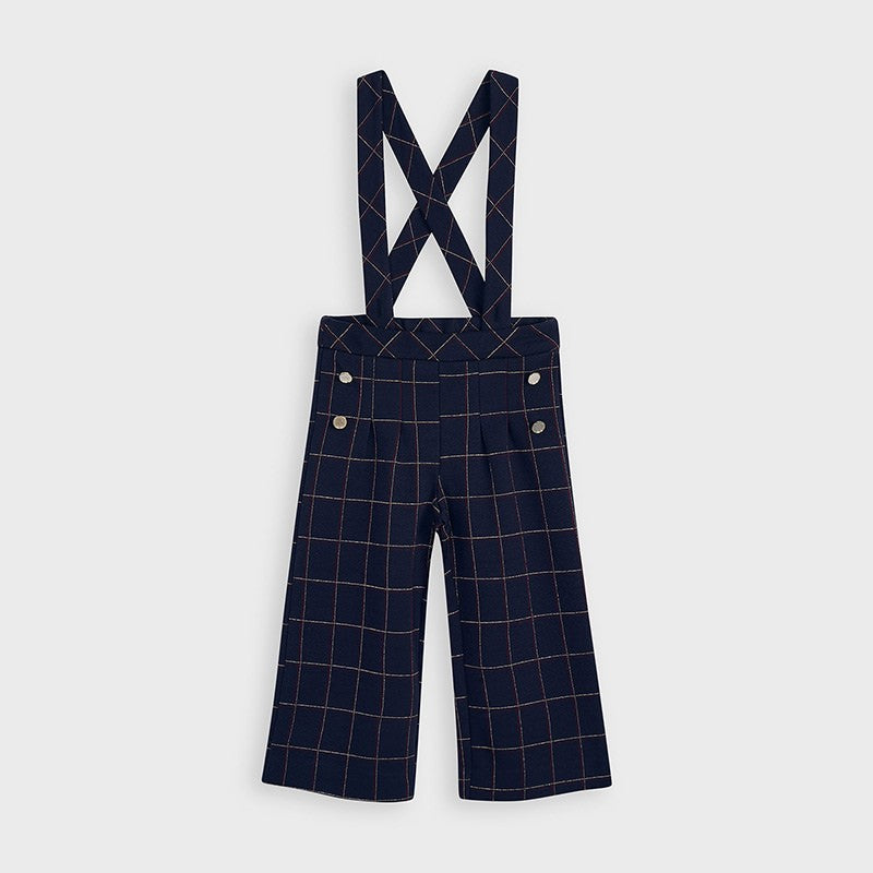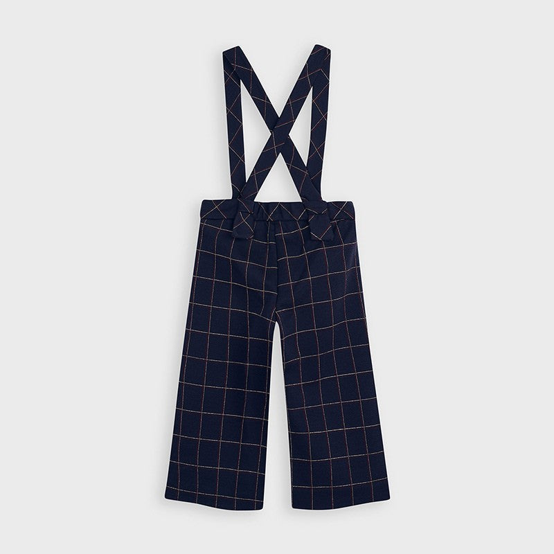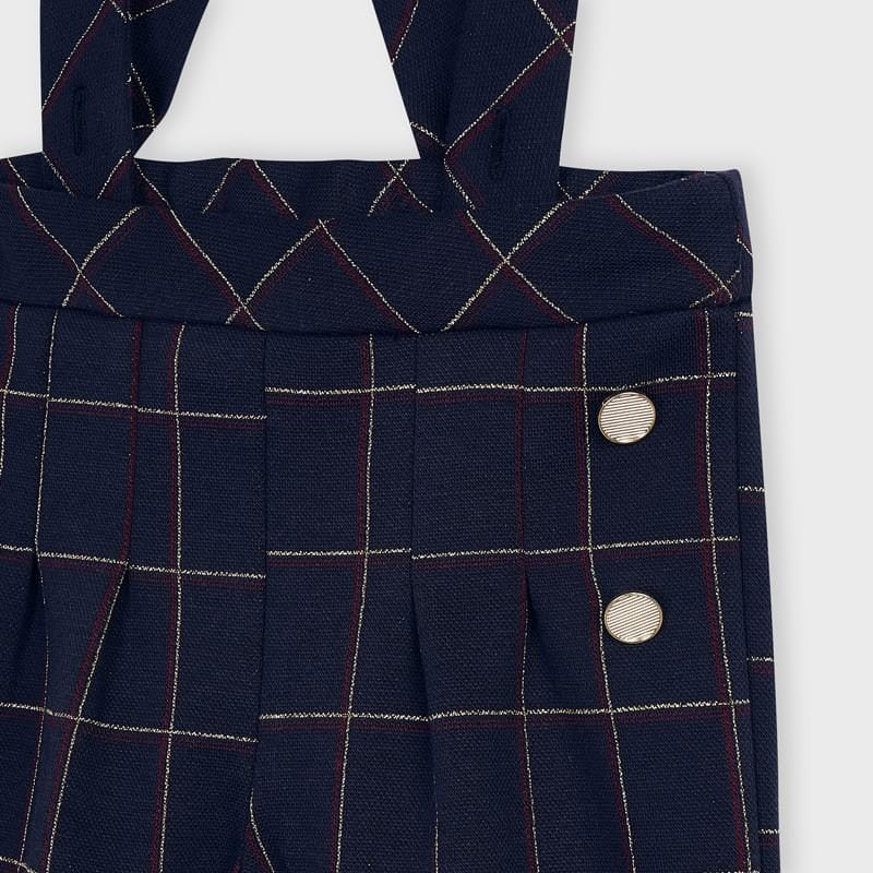 Karierte Culotte mit Hosenträgern für Mädchen von Mayoral aus der Herbst-/Winterkollektion Mini Girl, Produktcode 4551, Farbe 15 Navy Blue. Kinderbekleidung.