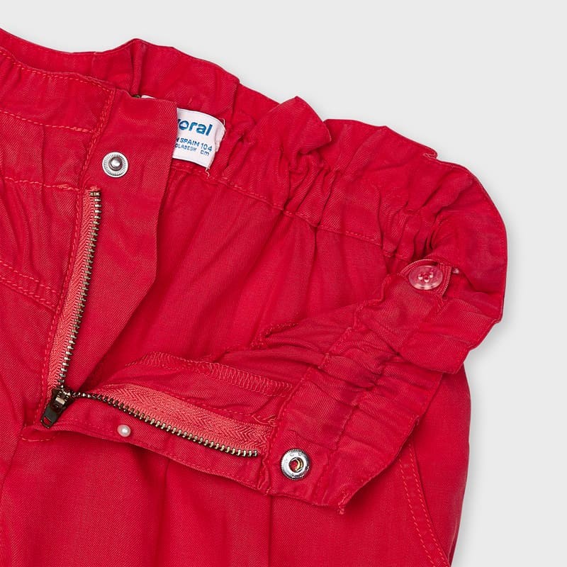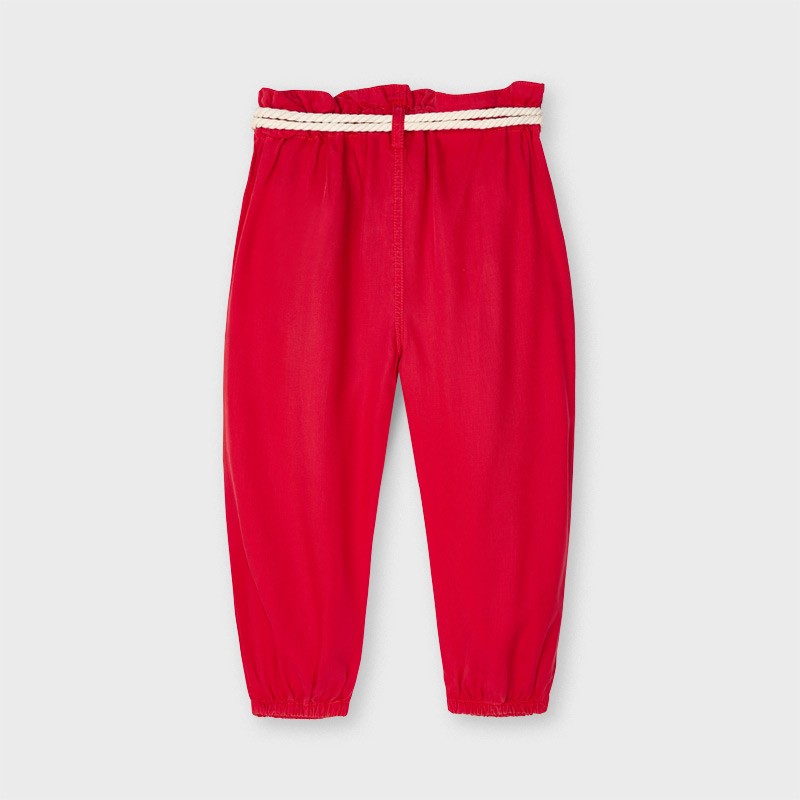 Locker sitzende Kinderhose mit Gürtel und Taschen und elastischem Bund für Mädchen von Mayoral aus der Mini Girl Frühjahr/Sommer Kollektion, Produktcode 3552, Farbe 49 Rot. Kinderbekleidung.
