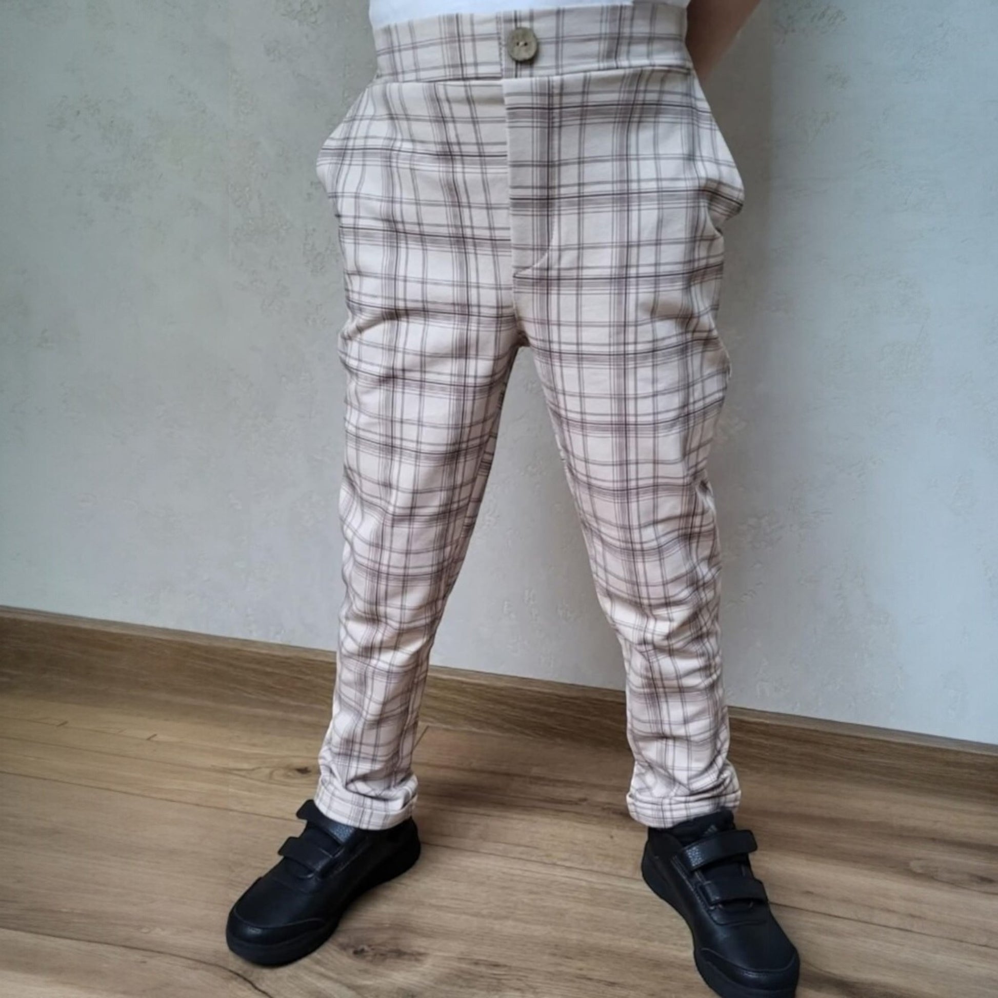 Beige karierte Hose für einen Jungen