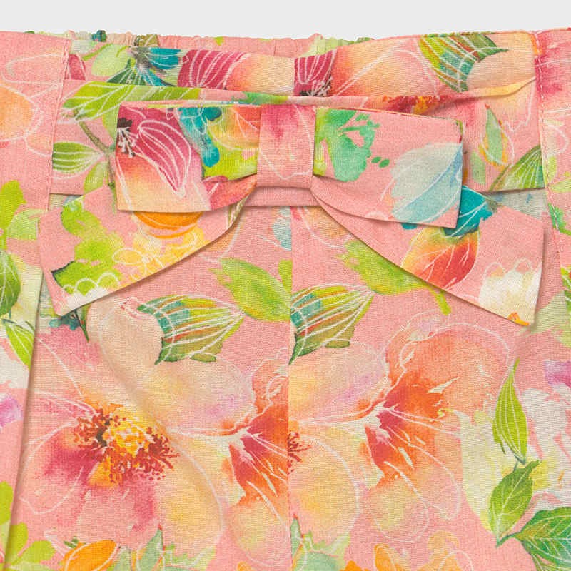 Lange geblümte Kinderhose mit dekorativer Schleife für Mädchen von Mayoral aus der Frühjahr-Sommer-Baby-Mädchen-Kollektion, Produktcode 1578, Farbe 11 Koralle. Kinderbekleidung.