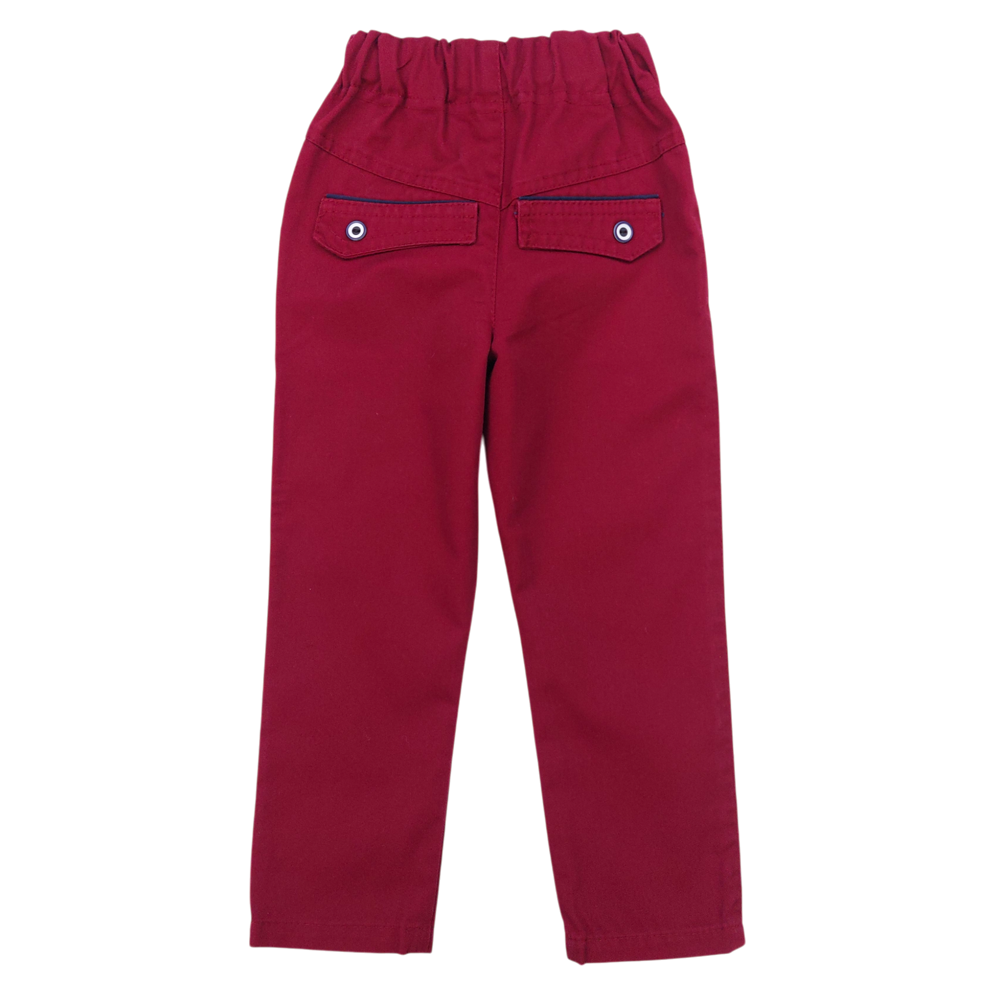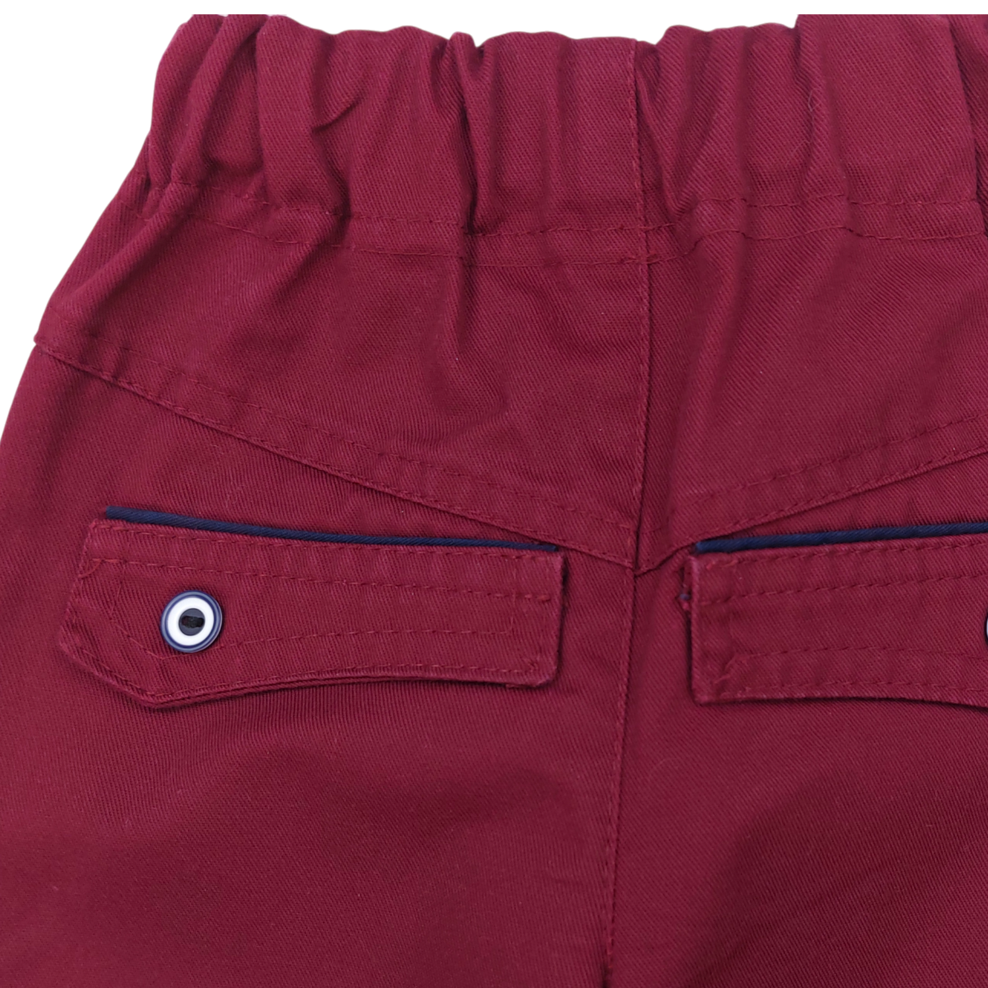 Stilvolle burgunderrote Jungenhose , perfekt für Herbst- und Winteranlässe. Aus weichem, dehnbarem Stoff gefertigt, bietet sie Komfort und Bewegungsfreiheit. Sie verfügt über praktische Seitentaschen mit kontrastierenden Akzenten und angedeutete Gesäßtaschen für einen Hauch von Eleganz. Ein elastischer Bund sorgt für eine perfekte Passform. Der gerade Schnitt ist für ganztägigen Tragekomfort ausgelegt.