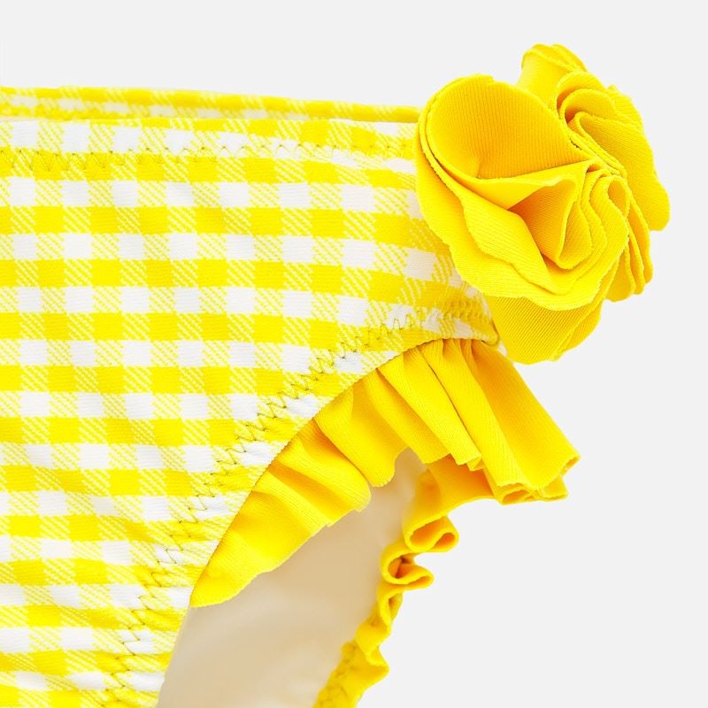 2er-Set Kinder-Badeslips mit Print und Rüsche für Mädchen von Mayoral aus der Frühjahr-Sommer-Baby-Mädchen-Kollektion, Produktcode 1697, Farbe 46 Gelb. Kinderbekleidung.