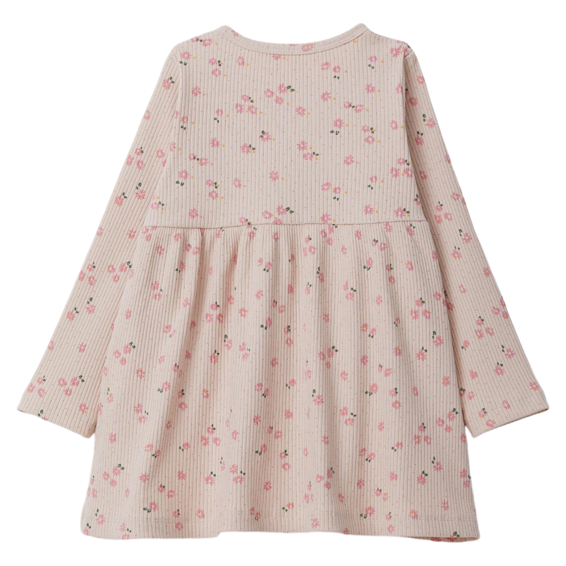 Ein bezauberndes beiges Kleid für Mädchen aus der Herbst-/Winterkollektion , verziert mit einem zarten Blumenmuster. Hergestellt aus weicher, gerippter Baumwolle mit Elasthananteil für mehr Tragekomfort. Lange Ärmel und ein Zwei-Knopf-Verschluss am Ausschnitt verleihen Eleganz, während der ausgestellte Schnitt Bewegungsfreiheit ermöglicht. Perfekt für den Alltag und besondere Anlässe.