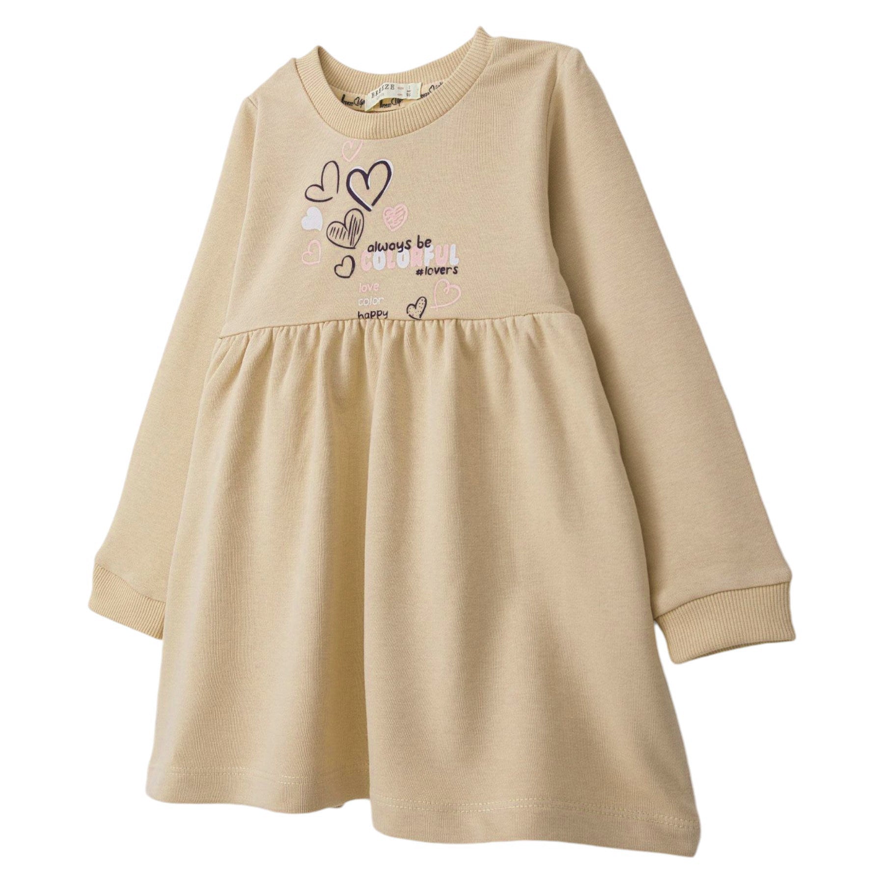 Mädchen Baumwollkleid mit Herzen Breeze 20837-30924 aus der Herbst-Winter-Saison, Farbe Beige