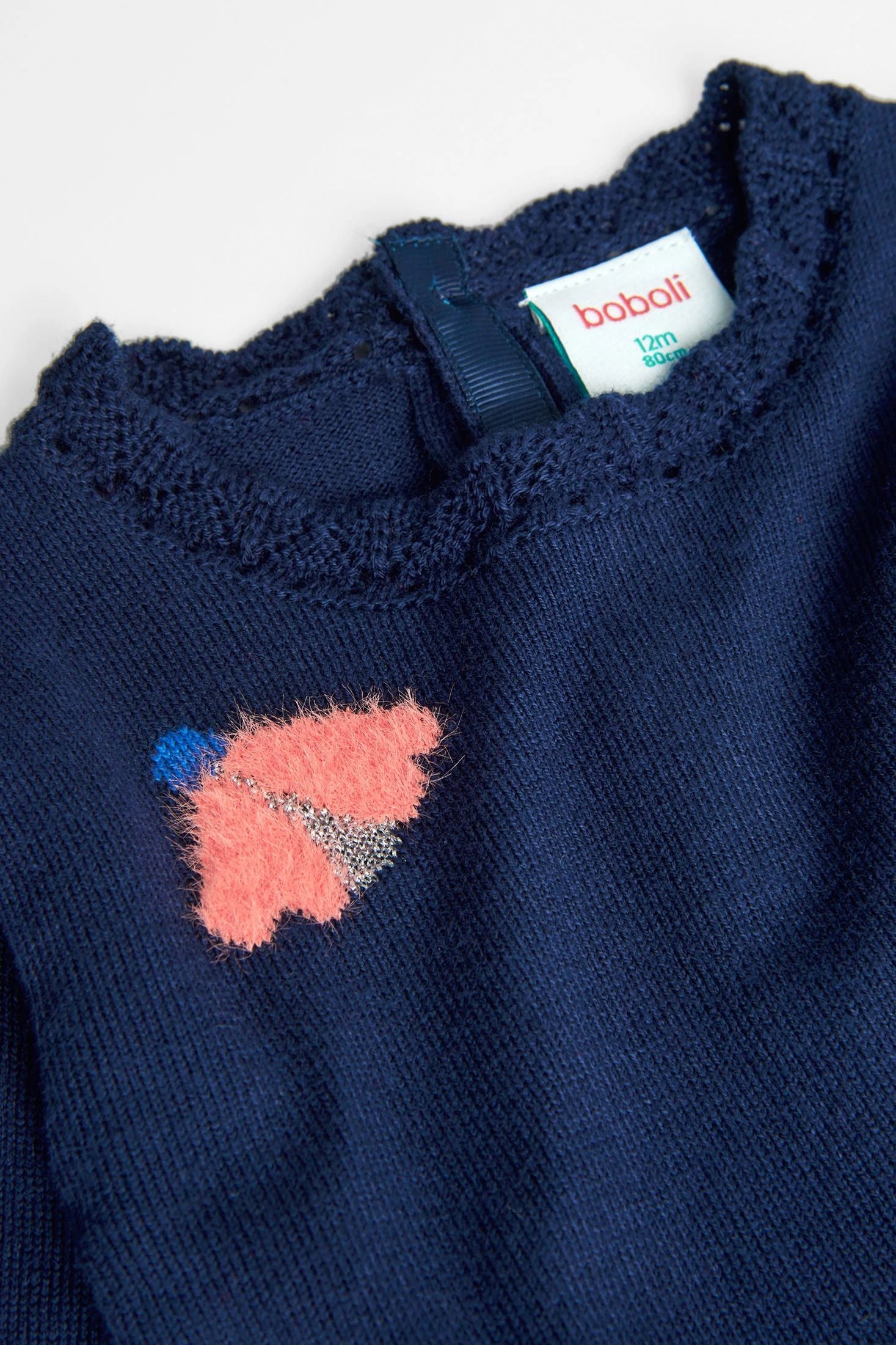 Mädchenkleid aus der neuen Boboli Baby-Mädchenkollektion, Produktcode 707341, Farbe 2440 Marineblau. Kinderkleidung.