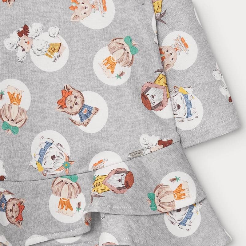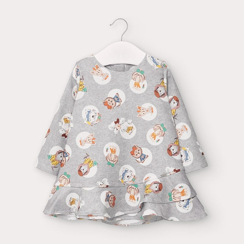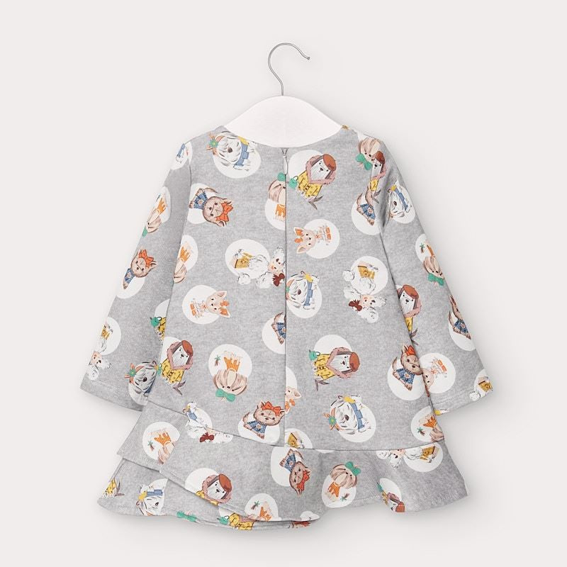 Alltagstaugliches Baumwollkleid mit Aufdruck für Mädchen aus der Herbst-/Winterkollektion für Baby-Mädchen von Mayoral, Produktcode 2963, Farbe 27 Silber. Kinderbekleidung.