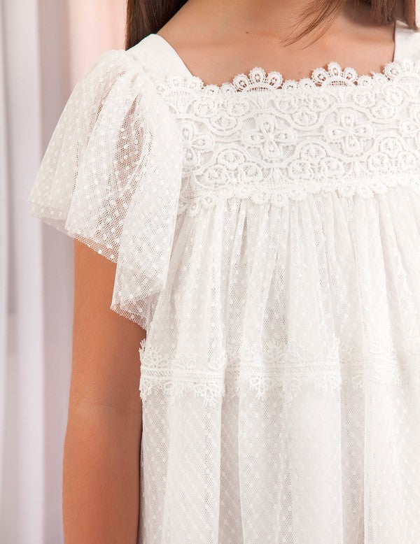 Formelles Tüll-Fantasiekleid für Mädchen aus der Abel & Lula Girls Premium Mini Collection, Frühling/Sommer, Produktcode 5003, Farbe 25 Weiß. Elegante Kinderkleidung. Kindermode.