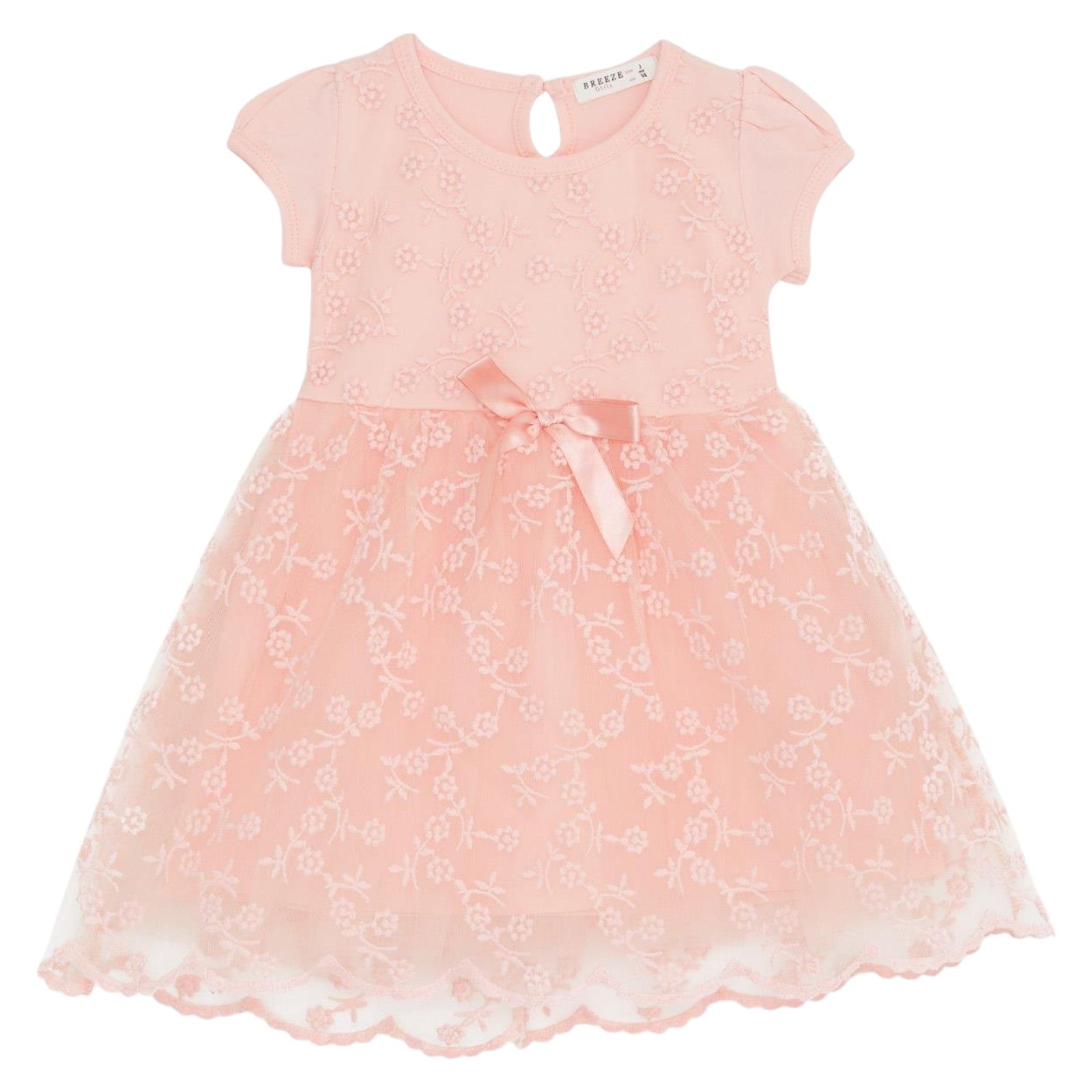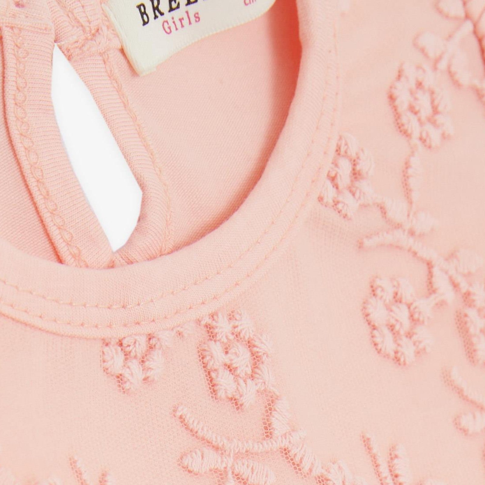 Ein himmlisches apricotfarbenes Kleid für Mädchen aus zarter Spitze. Kurze Ärmel verleihen Charme, während elegante Spitze einen raffinierten Stil verleiht. Das Kleid verfügt über einen praktischen Knopfverschluss am Rücken für einfaches An- und Ausziehen. Der Verzicht auf Taschen unterstreicht den dezenten und luftigen Charakter. Perfekt für viele Anlässe, dieses Frühjahr/Sommer-Angebot von Breeze.