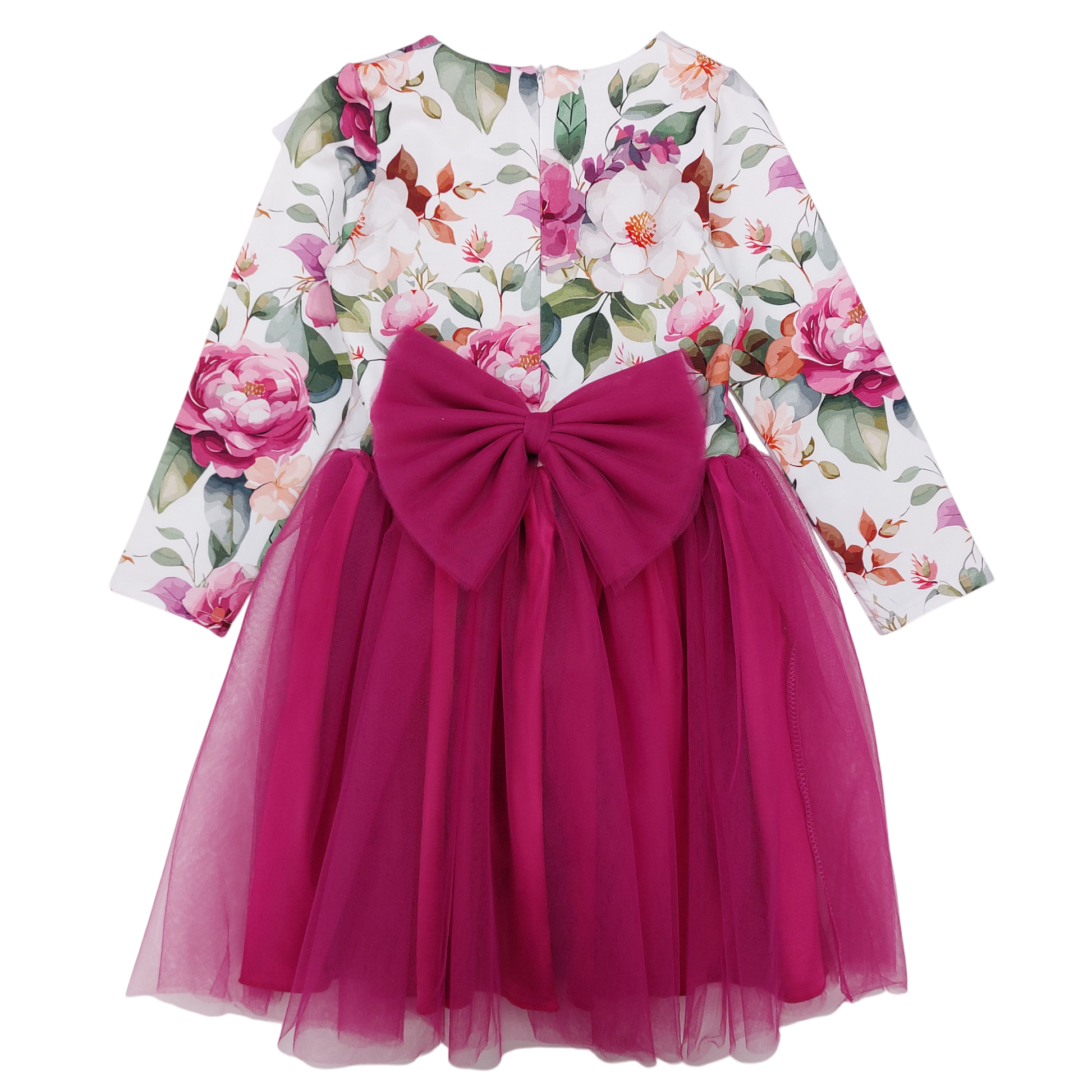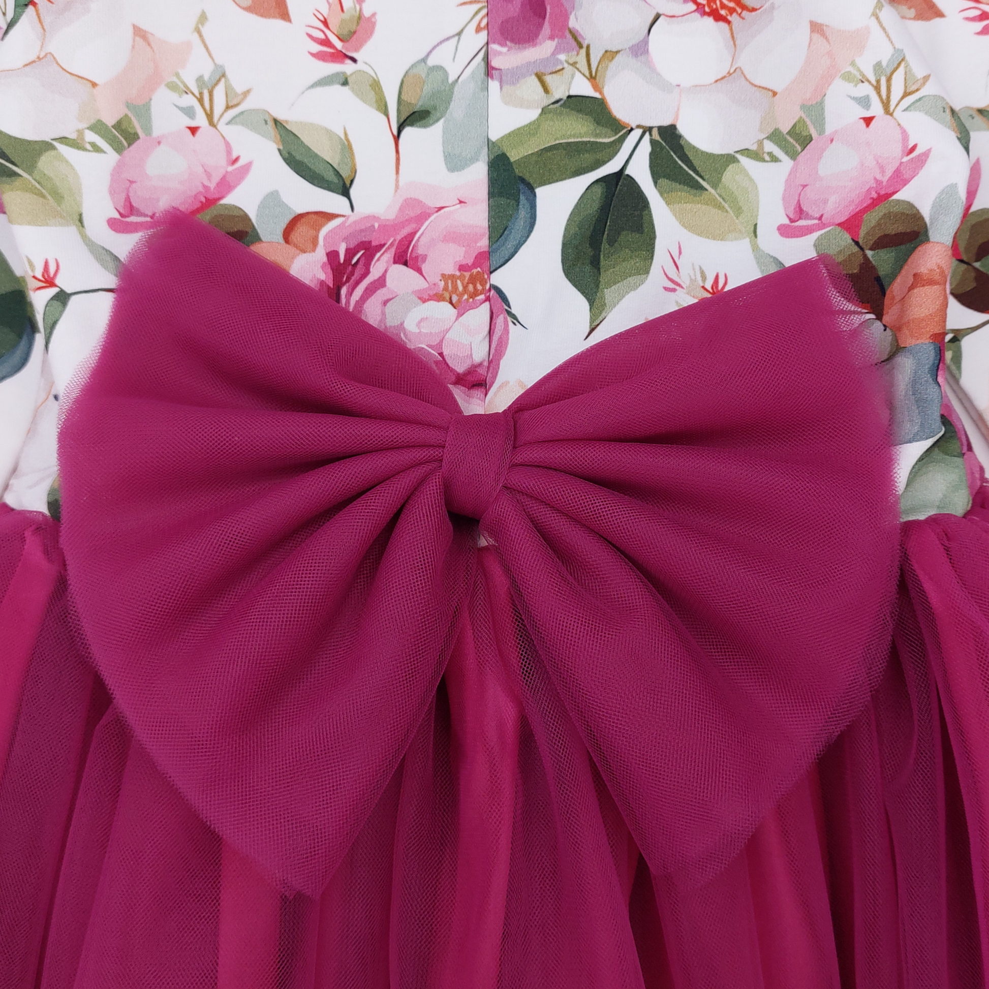 Elegantes Kleid für ein Mädchen ist die perfekte Wahl für Eltern, die ein stylisches Outfit für ihr Kind suchen. Tüllrock und Blumenmuster, Modell Katerina hebt sich von anderen Designs ab. Die intensive Fuchsia-Farbe macht das Kleid auffällig und auffällig.
