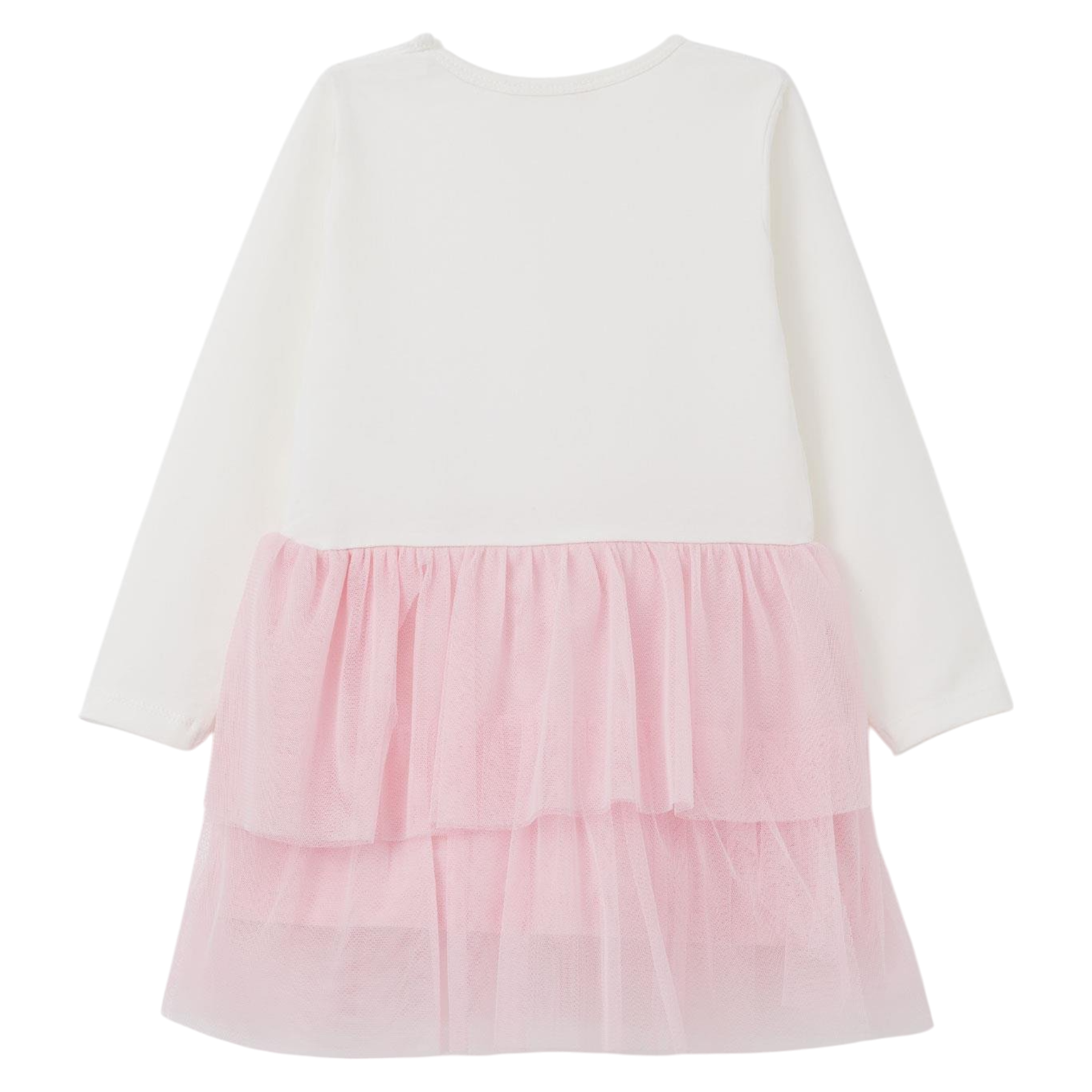 Dieses Kleid ist in einer harmonischen Kombination aus zartem Rosa und klassischem Weiß gestaltet. Das weiße Oberteil, verziert mit einem Spitzenmotiv, wirkt unglaublich stilvoll und verleiht dem Kleid einen Hauch von Eleganz. Der doppellagige Rock aus pastellrosa Tüll sorgt für einen luftig-leichten Effekt und macht das Kleid perfekt für besondere Anlässe wie Geburtstage, Familienfeiern oder Fotoshootings. Eine bezaubernde Blumenapplikation an der Taille verleiht dem Kleid subtilen Charme und unterstreicht den mädchenhaften Charakter.