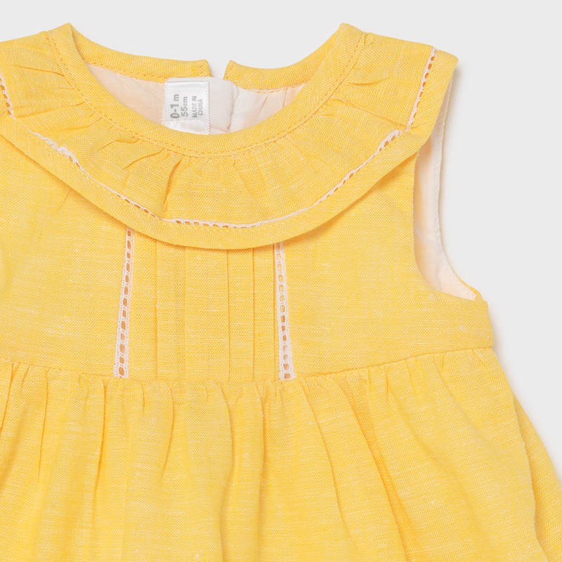 Mayoral Leinenkleid mit Höschen für Mädchen aus der Frühjahr/Sommer-Kollektion für Neugeborene, Produktcode 1834, Farbe 39 Gelb. Kleidung für Neugeborene.