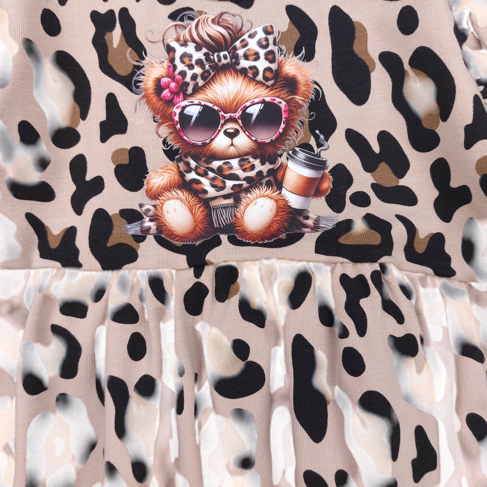Betonen Sie den mädchenhaften Charme und Stil Ihrer Kleinen, indem Sie sich für dieses bezaubernde Leopardenkleid mit Teddybär-Aufdruck entscheiden!