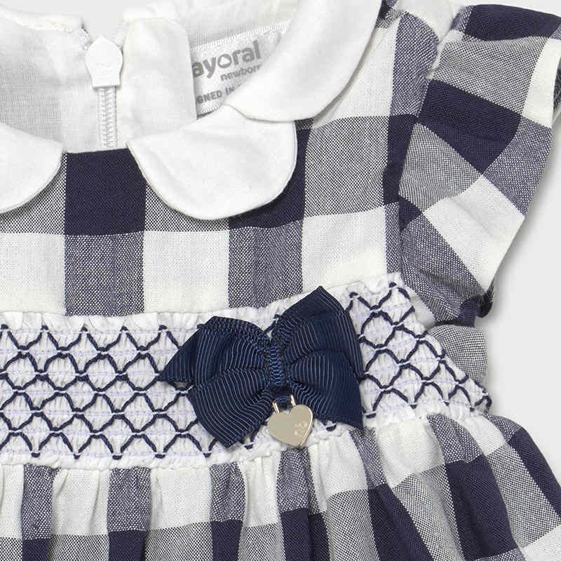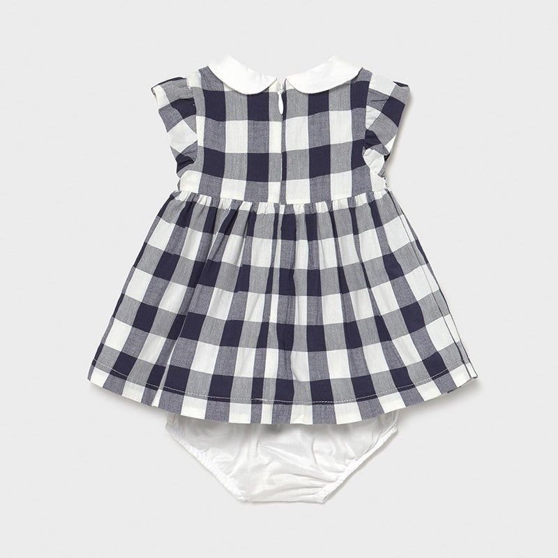 Kariertes Kleid mit Höschen von Mayoral für Mädchen aus der Frühjahr/Sommer-Kollektion für Neugeborene, Produktcode 1833, Farbe 59 Navy. Kleidung für Neugeborene.