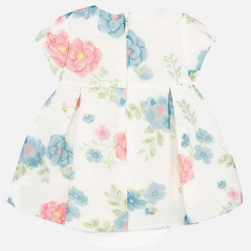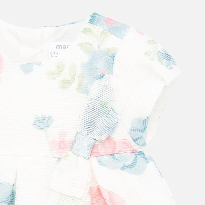 Elegantes Kinderkleid mit kurzen Ärmeln und Blumendruck für Mädchen von Mayoral aus der Neugeborenen-Mädchenkollektion für die Saison Frühjahr/Sommer, Produktcode 1875, Farbe 88 Blau. Kleidung für Neugeborene.