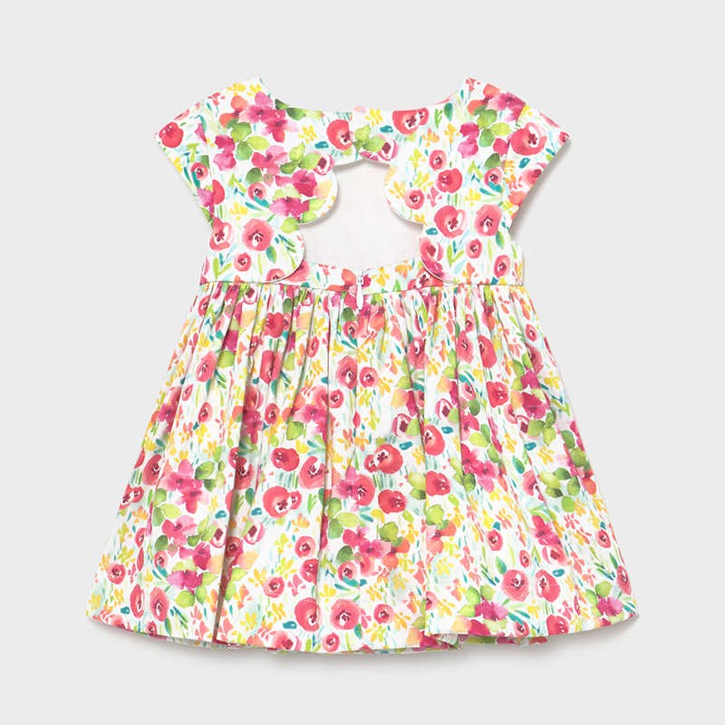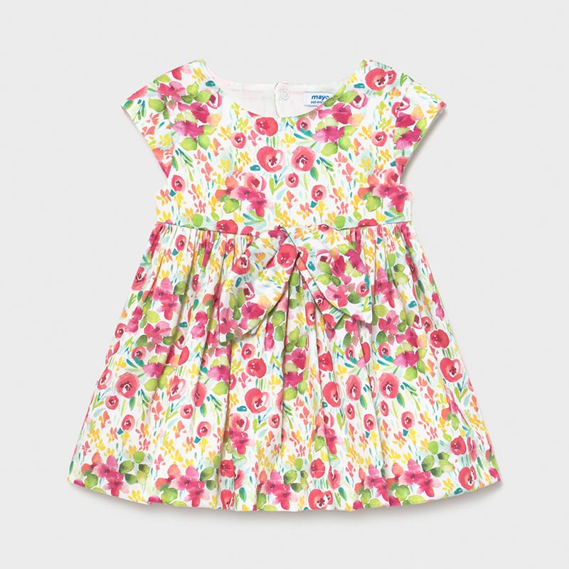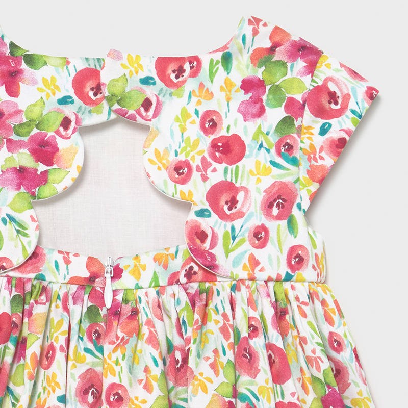 Elegantes Kinderkleid mit kurzen Ärmeln und Blumendruck für Mädchen von Mayoral aus der Frühjahr/Sommer Baby Mädchen Kollektion, Produktcode 1973, Farbe 10. Kinderbekleidung.