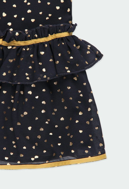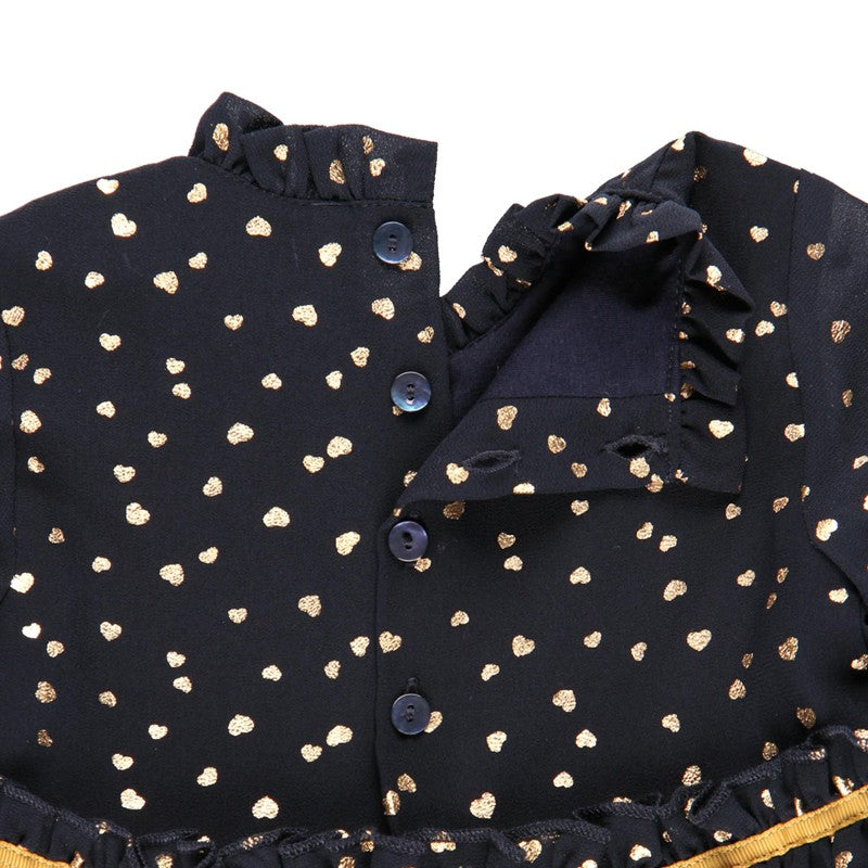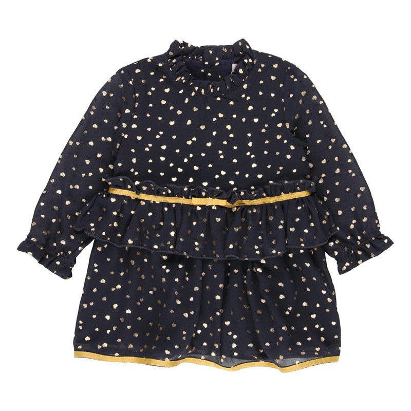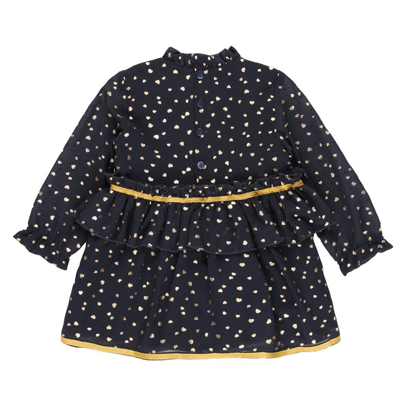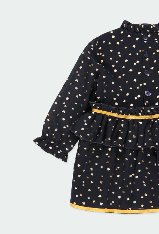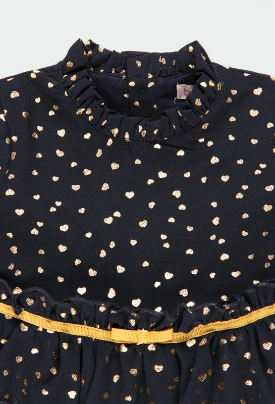 Chiffonkleid für Babymädchen mit langen Ärmeln und Herz-Print für Mädchen aus der Boboli Herbst-Winter-Kollektion, Produktcode 701132, Marineblau. Kinderkleidung.