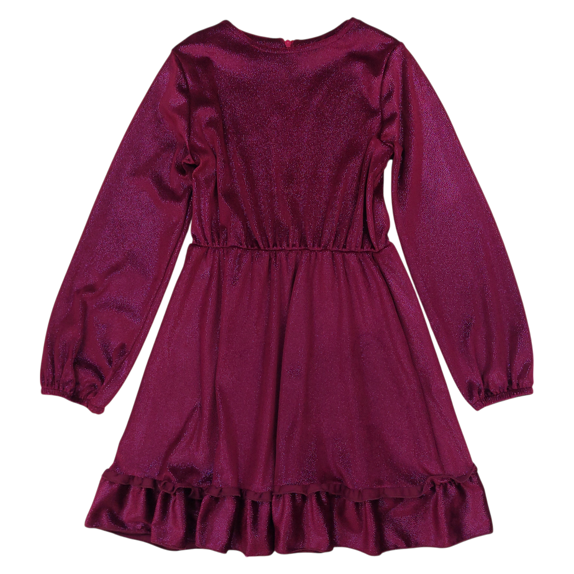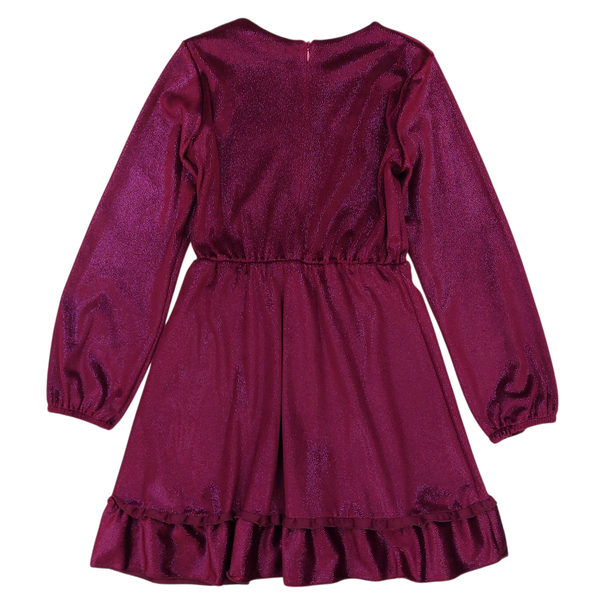 Das burgunderfarbene Abendkleid Katerina ist eine einzigartige Wahl für Mädchen zu besonderen Anlässen. Aus schimmerndem Material gefertigt, zieht es die Blicke auf sich und verleiht Eleganz. Es hat lange Ärmel mit zarten Manschetten und einen gerüschten Saum , der den mädchenhaften Touch unterstreicht. Die Taille wird durch einen elastischen Bund betont, und ein verdeckter Reißverschluss auf der Rückseite erleichtert das Anziehen. Das Kleid hat einen runden Ausschnitt und einen schlichten, aber auffälligen Schnitt. Es ist das perfekte Kleid für Feiertage, Geburtstage oder andere besondere Anlässe.