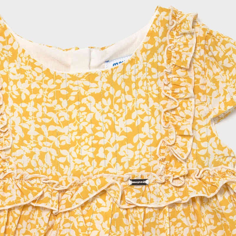 Bedrucktes Kleid von Mayoral für Mädchen aus der Frühjahr/Sommer-Kollektion für Babymädchen, Produktcode 1978, Farbe 46 Senf. Kinderkleidung.