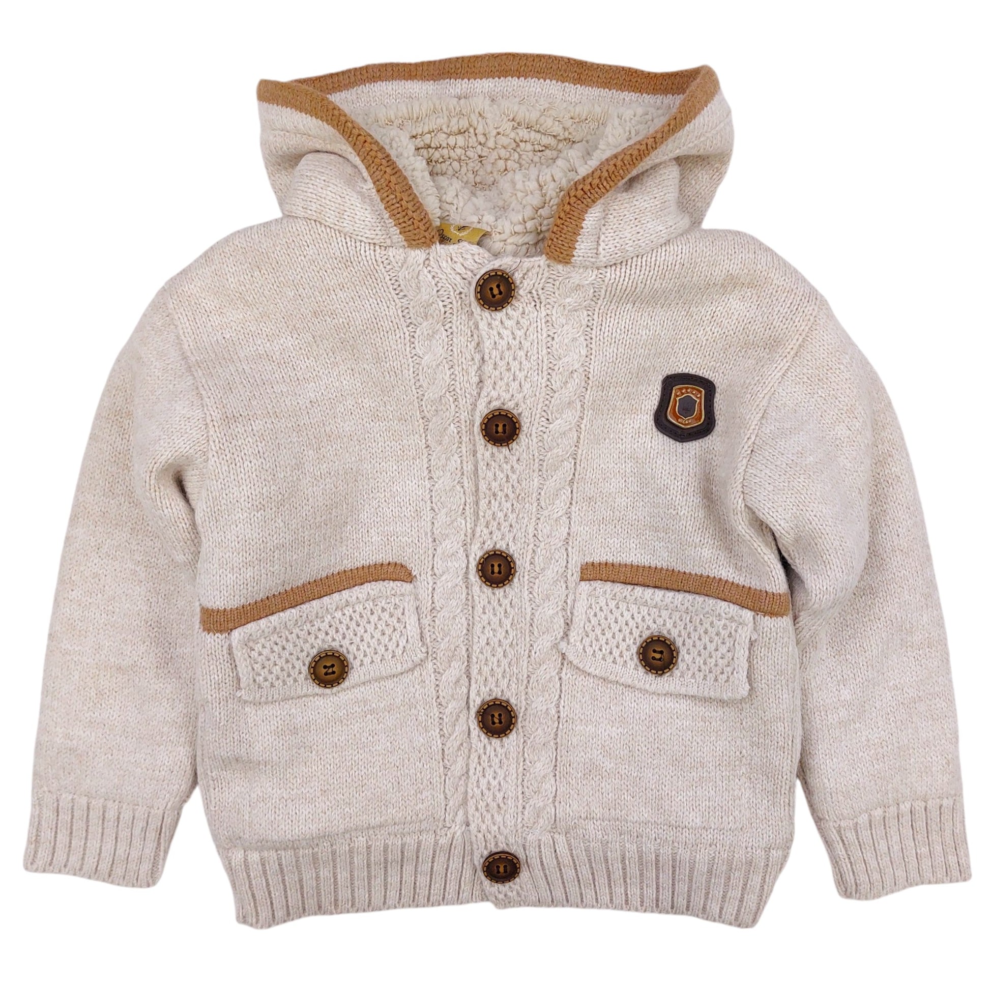 Beigefarbener Oscar Star 8692448-13924 warmer Schaffellpullover mit Kapuze für Jungen aus der Herbst-Winter-Saison, Farbe Beige.