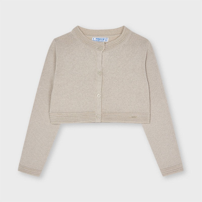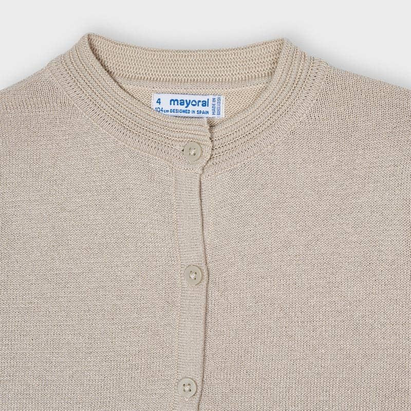 Elegante Strickjacke für Mädchen von Mayoral aus der Mini Girl Frühjahr/Sommer Kollektion, Produktcode 321, Farbe 69 Beige. Kinderbekleidung.