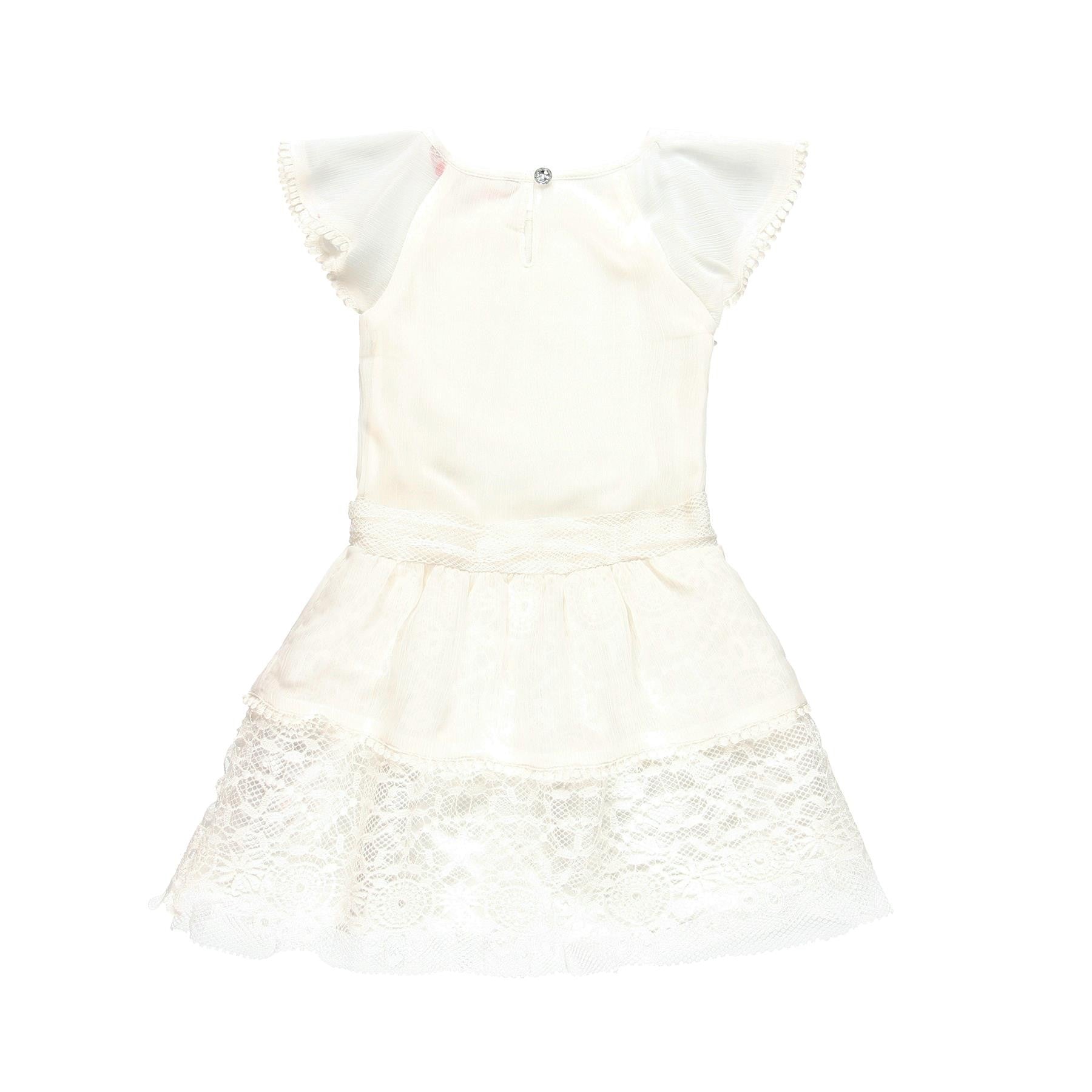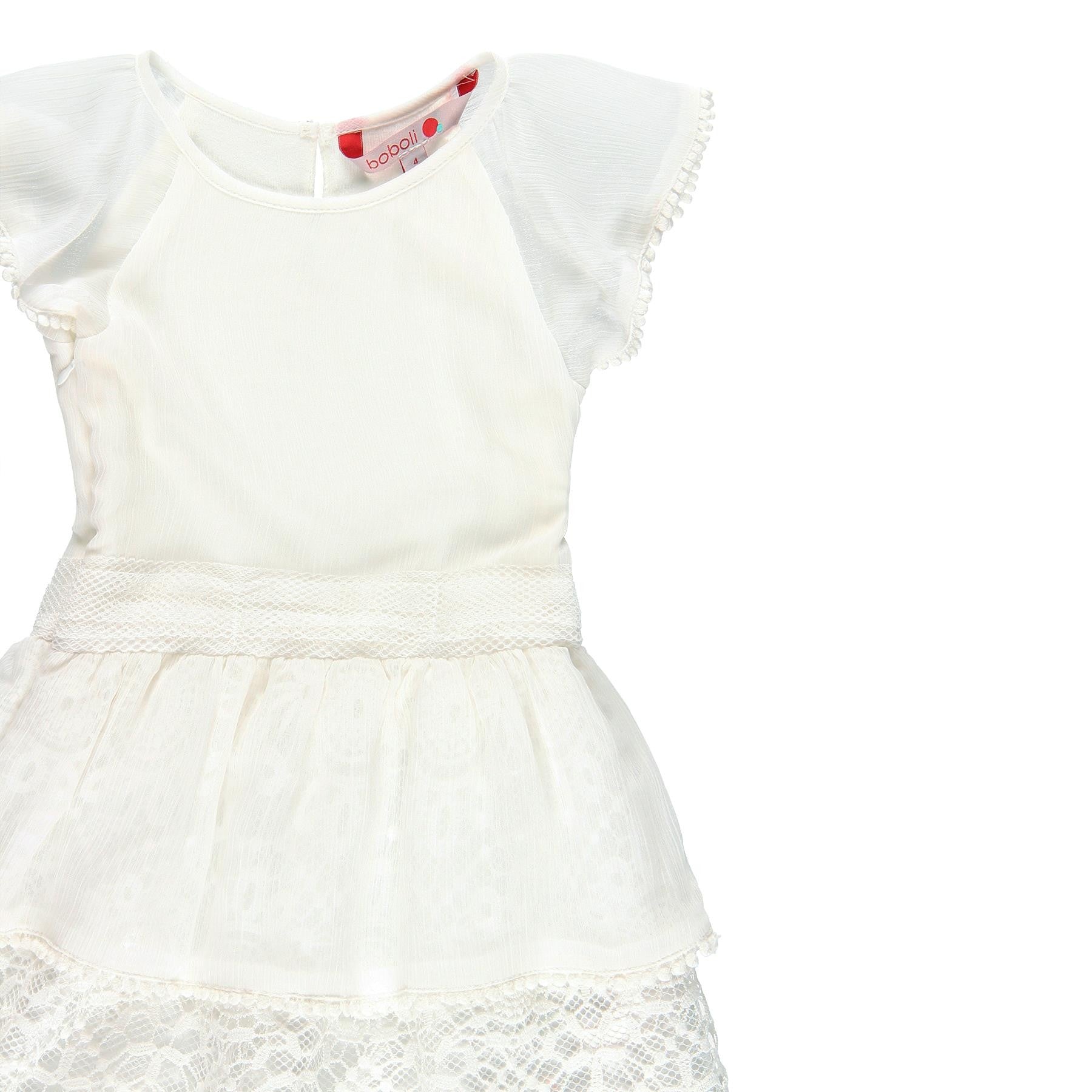 Elegantes Chiffonkleid für Mädchen mit kurzen Ärmeln und Spitze für Mädchen aus der Boboli Frühjahr Sommer Kollektion, Produktcode 729738, Farbe weiß. Kinderbekleidung.