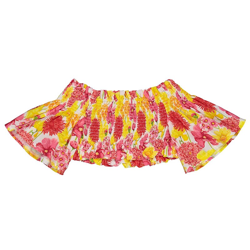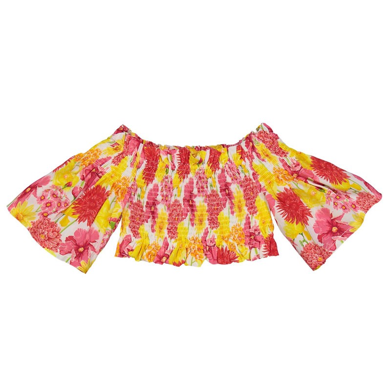 Blumenbluse für Kinder aus der neuen Frühjahr-Sommer-Kollektion von Trybeyond Junior Girl, Produktcode 40493-00, Farbe 95Z Pink/Gelb.