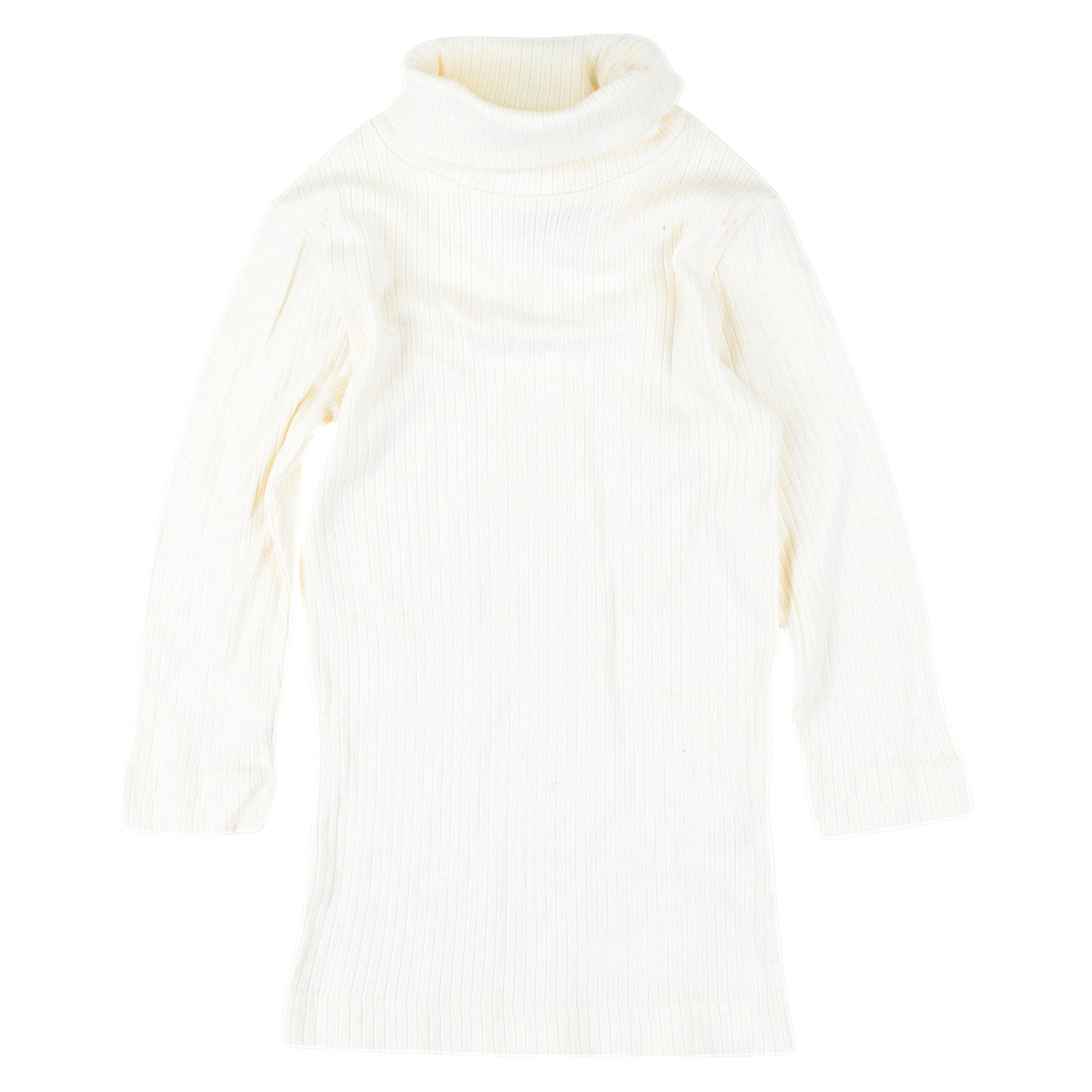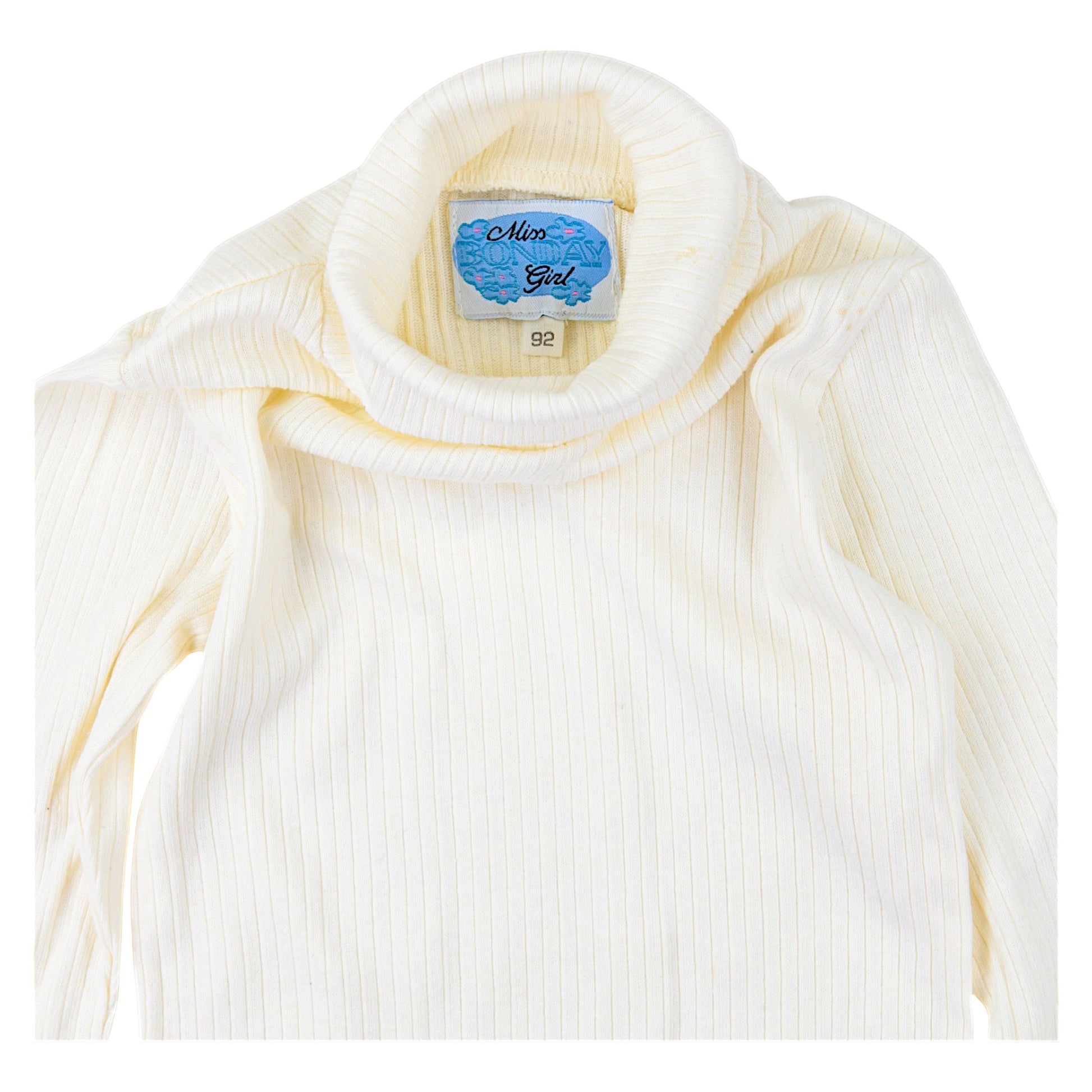 Eine elegante Rollkragen-Tunika für Mädchen der Marke Miss Girl . Hergestellt aus weichem, geripptem weißem Stoff, bietet sie Komfort und Wärme an kühleren Tagen. Lange Ärmel und ein hoher Rollkragen bieten hervorragenden Schutz vor Kälte, während der gerade Schnitt Bewegungsfreiheit ermöglicht. Perfekt für den Alltag und elegantere Anlässe.